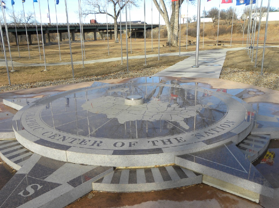 The new location, as determined by the U. S. Coast & Geodetic Survey, was over 20 miles north of Belle Fourche, but there were no other nearby towns for which a name could be associated. Fortunately, Highway 85 passed near the new site, so a roadside park was built in 1959 that included a picnic area, flag pole, and historical sign. The area set aside for the roadside park was leased by the South Dakota Highway Department who did maintenance such as upkeep and trash removal. In 1962, the U. S. Coast & Geodetic Survey established a triangulation station monument in the approximate center of the 10-acre park. Two reference marks were also place with Reference mark No. 1 set into the concrete base of the flagpole. many have come to the conclusion that this bronze marker marks the center location. The true location, by geodetic position, is at an unmarked location nearly 400 yards east of the flag pole in a pasture.
