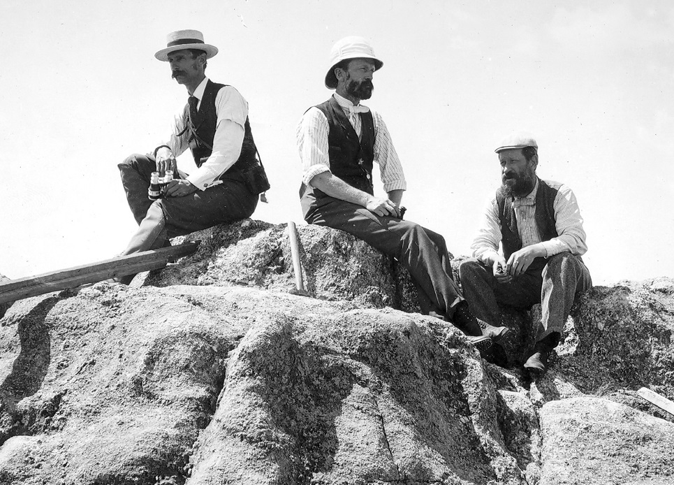 Members of the U. S. Geological Survey pose atop Harney Peak in 1893.