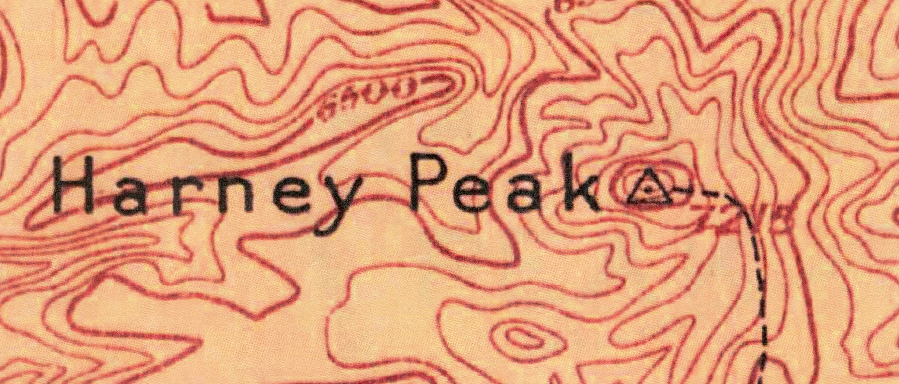 The "Harney Peak" quad, published in 1901, was compiled from survey data collected in 1897-98. The 7240' elevation on Harney Peak first appeared on this map. - USGS 1901 "Harney Peak" quad.