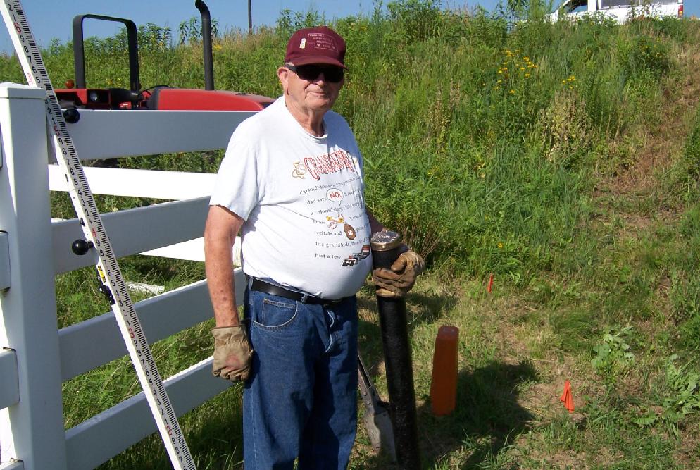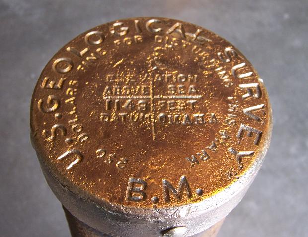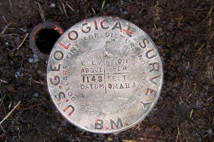 This bench mark was established in 1902 by USGS surveyor M. A. Steele who was doing topographic mapping for the "Weeping Water" 30-minute quadrangle sheet in eastern Nebraska. The cap and iron post is from the 1896 design implemented by USGS. Due to expansion of Interstate-80 between Lincoln and Omaha, the monument was likely going to be destroyed. Precise levels were first run to it in order to determine its elevation based upon 1988 NAVD which is 1142.397. This would convert to an elevation of 1142.077 for the NAD27.The 1902 elevation of 1142.710 by USGS is based upon the United States Geological Survey 's "Omaha" datum. This datum originated from bench marks established by the Missouri River Commission near Omaha in 1892.