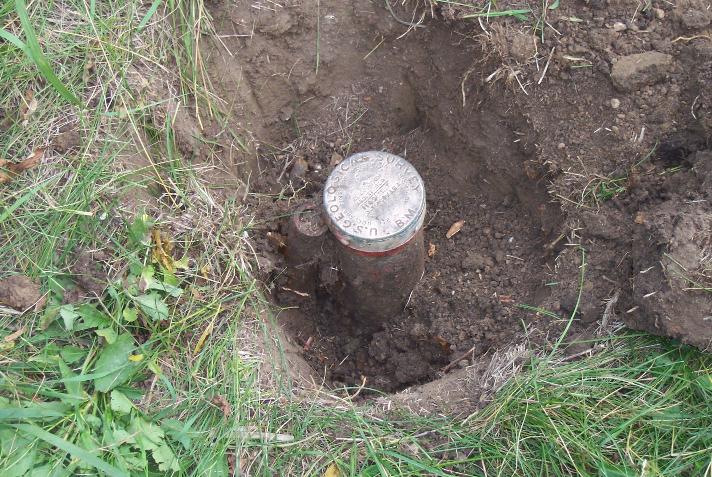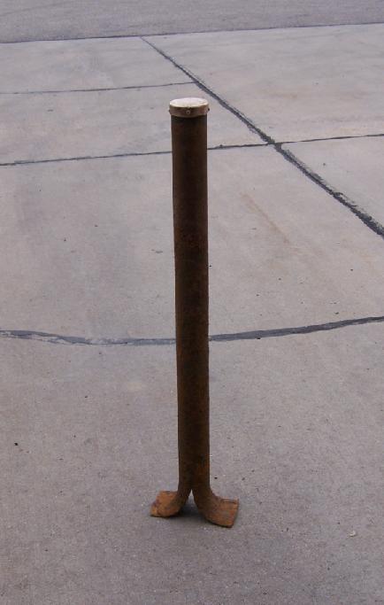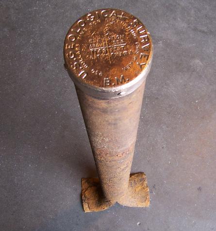 The iron pipe next to the bench mark was placed by an unknown person who probably thought the monument did not contain iron like most brass disks placed in concrete.