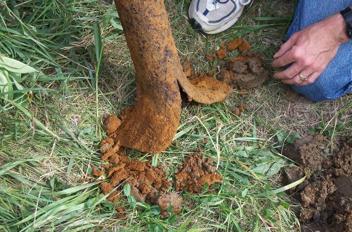 Rust in the soil from being buried for 105 years.