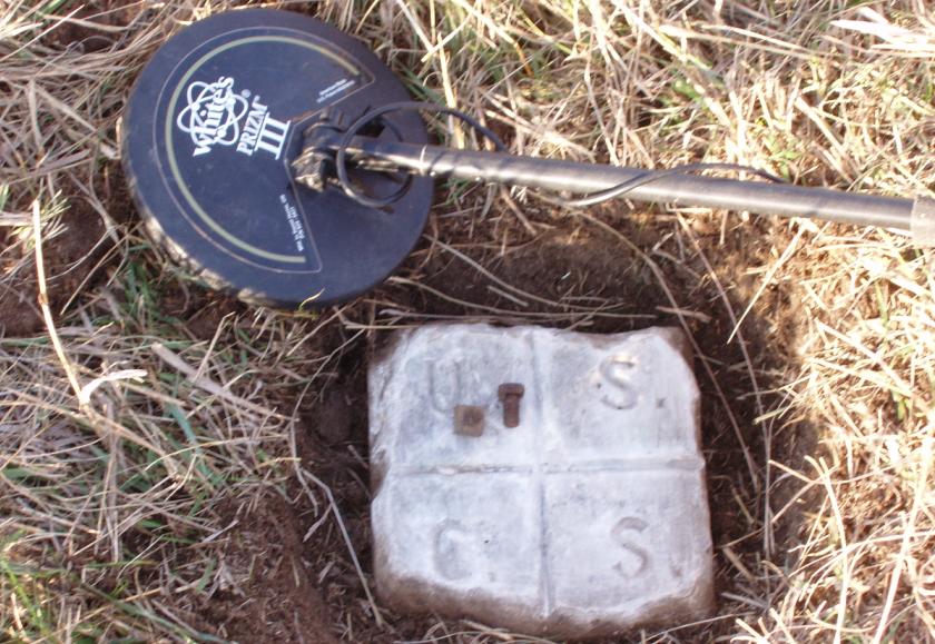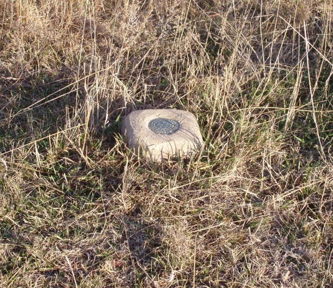The surface monument consisted of an 8-inch square marble post which was placed in 1899 by USC&GS surveyors during the 98th Meridian Survey between Mexico and Canada. Below the post is an inverted earthenware crock with a drill hole in the center. The hill on which it was placed is very prominent and a full view can be seen in all directions. The town of Brayton could be seen four miles to the east and might have been an unloading point for the heavy survey monuments.
