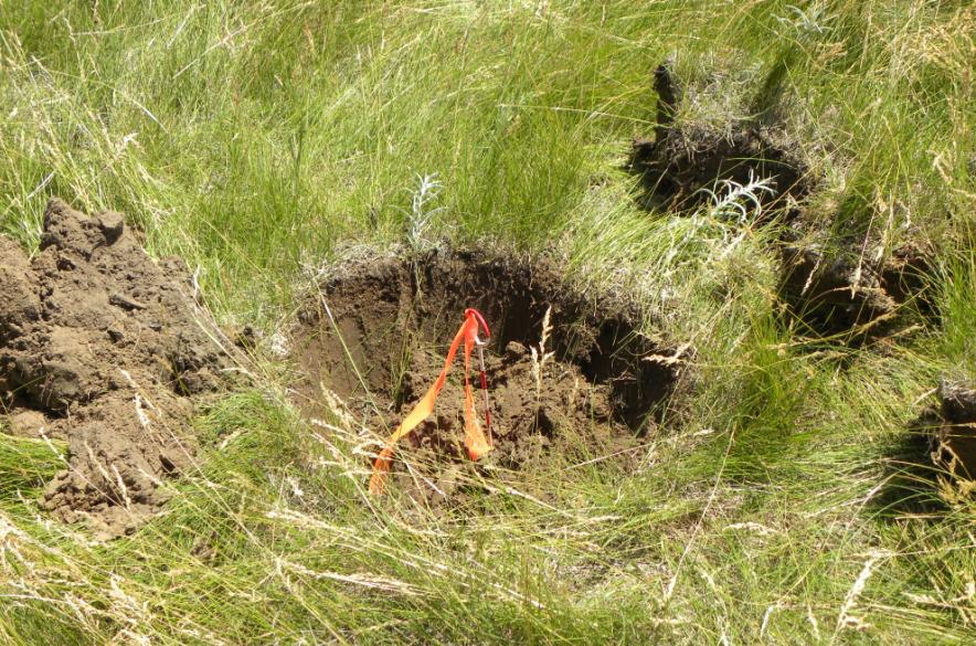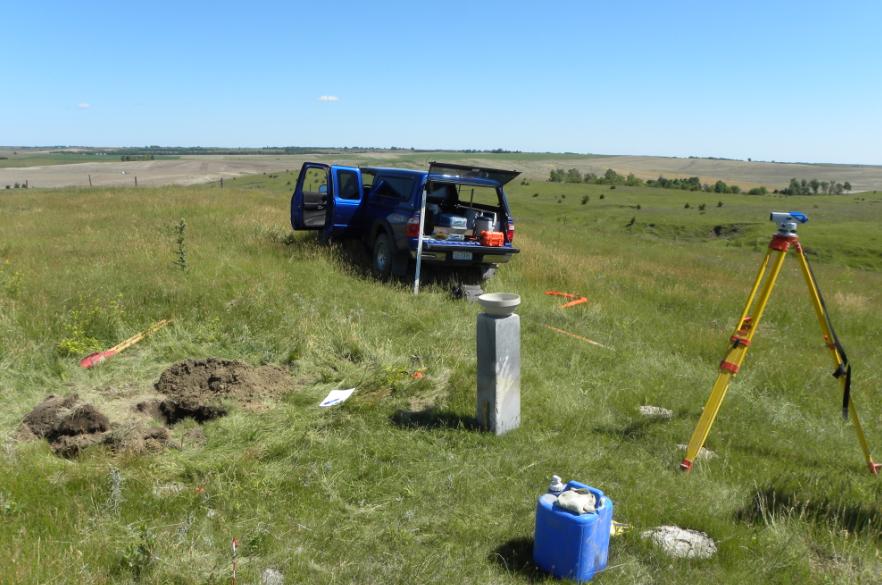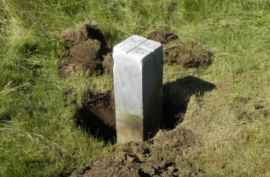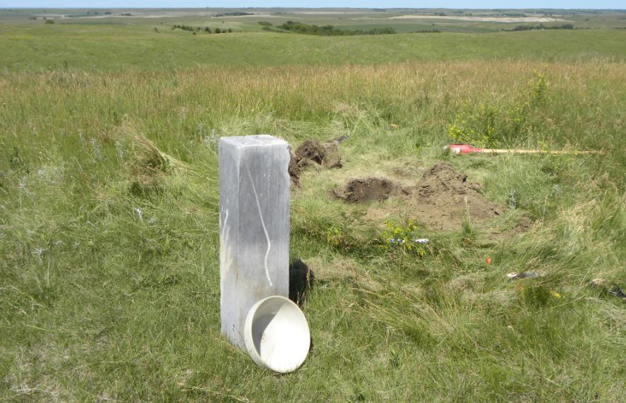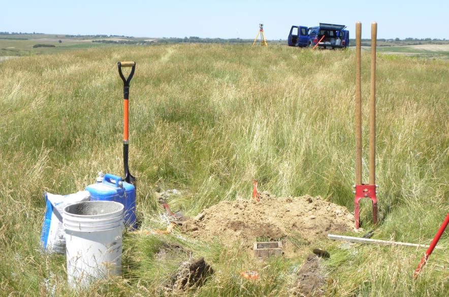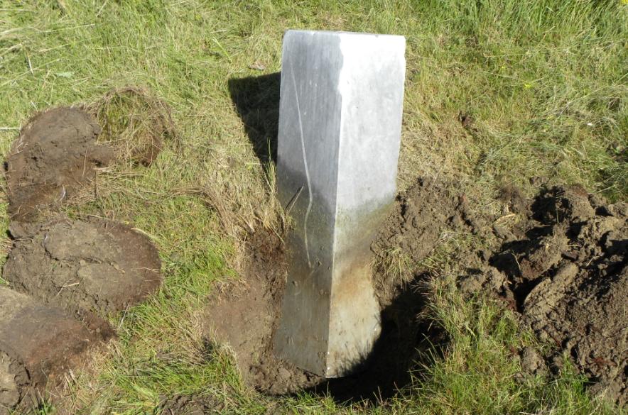 The post out of the ground after obtaining an elevation on the top and tying out the center.