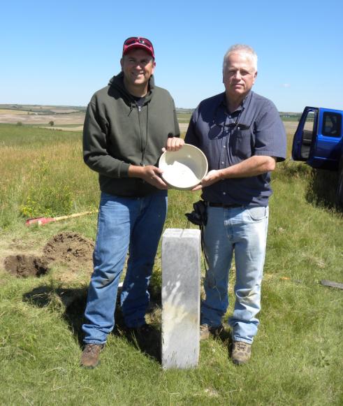 Jerry Penry and Gene Thomsen with another recovered monument.