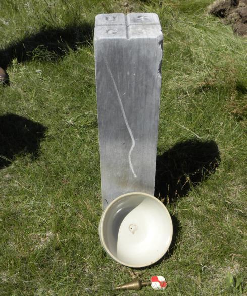 The post and bowl. The white streak is where a vehicle had once hit the stone.
