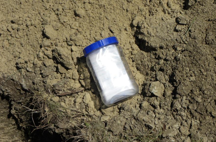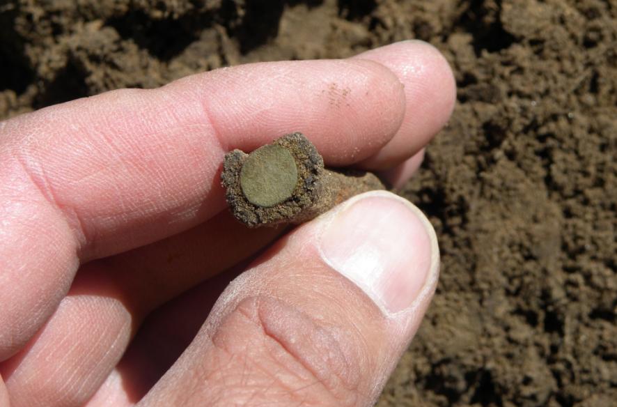 The brass grommet that was found in the ground near the location of the magnetic station.