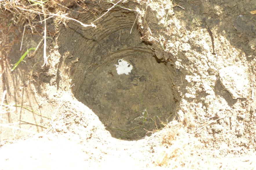 The inverted bowl fully exposed just prior to removal and after tying out the position.