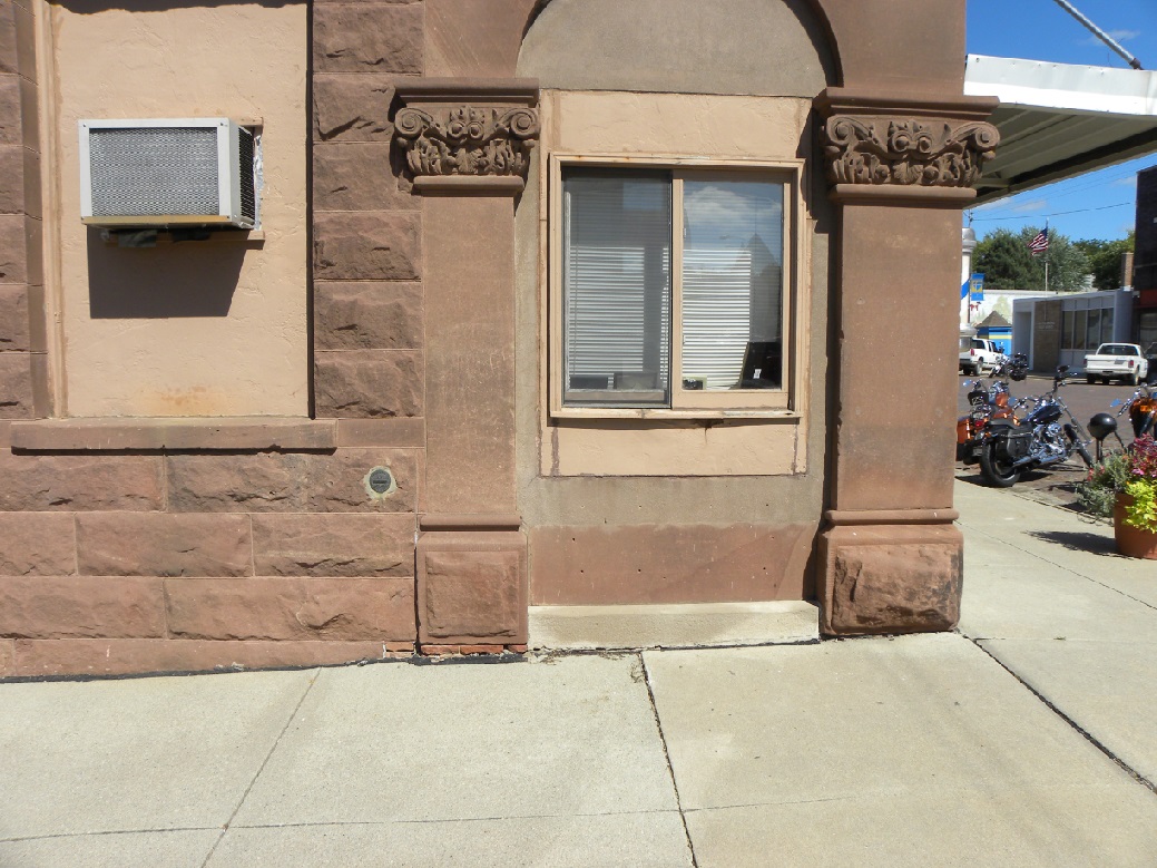 This bench mark is set vertically in old brick First National Bank building at the NW Corner of 3rd Street and Oakland Avenue in Oakland. The photo dates are September 13, 2014. NEBRASKA SURVEYING © Jerry Penry 2016