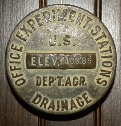 The bench mark on the wall inside the depot museum.