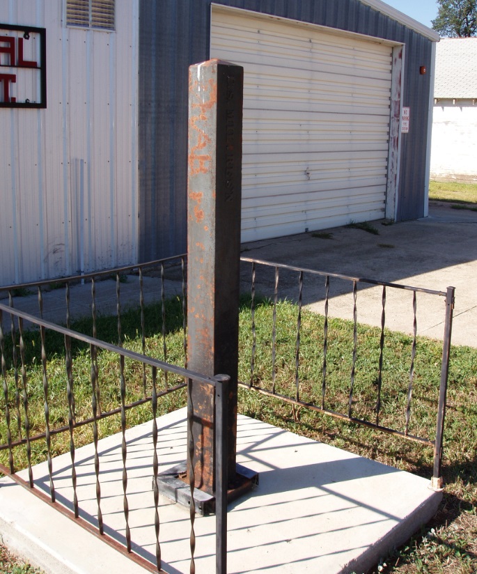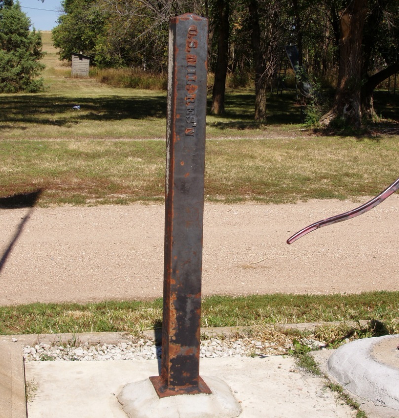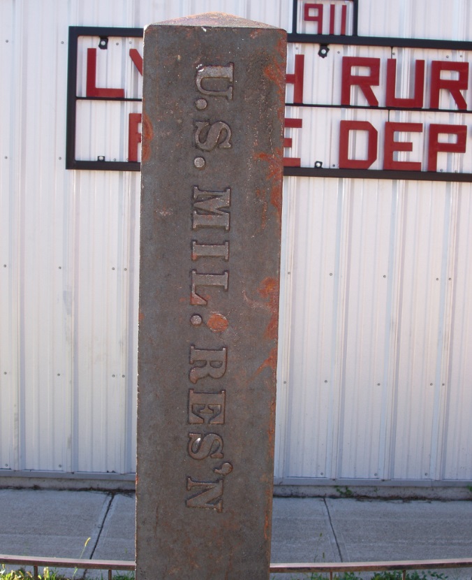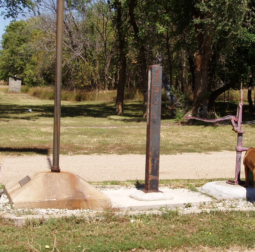 These iron posts were once located along the boundary of the former Fort Randall Military Reservation that was partly in both Nebraska and South Dakota. The posts shown below are believed to be those from the SE Corner of the reservation and along the easterly line at the south bank of the Missouri River. During the 1970's or 80's, the iron posts were taken from their locations. Many years later, the person who took them anonymously made them available. The small towns of Gross and Lynch each decided to put one on public display which is where they are located today.