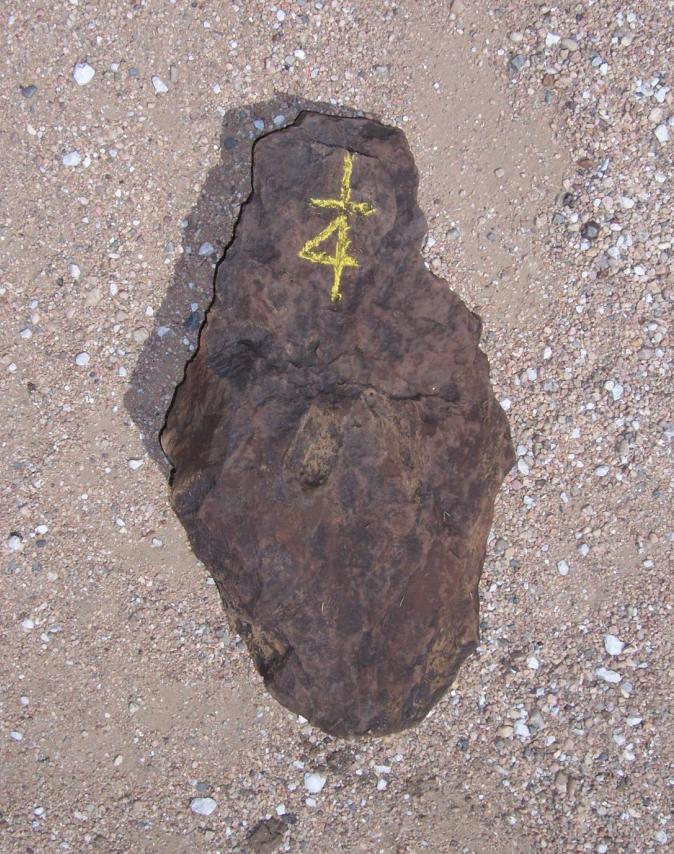 This excavated original GLO monument was marked with the chiseled ¼ indicating it to be a quarter corner. John B. Gridley noted it as being a Red Sandstone measuring 20"x12"x5". Field measurements taken on the date of excavation placed the size at 25"x13"x5".