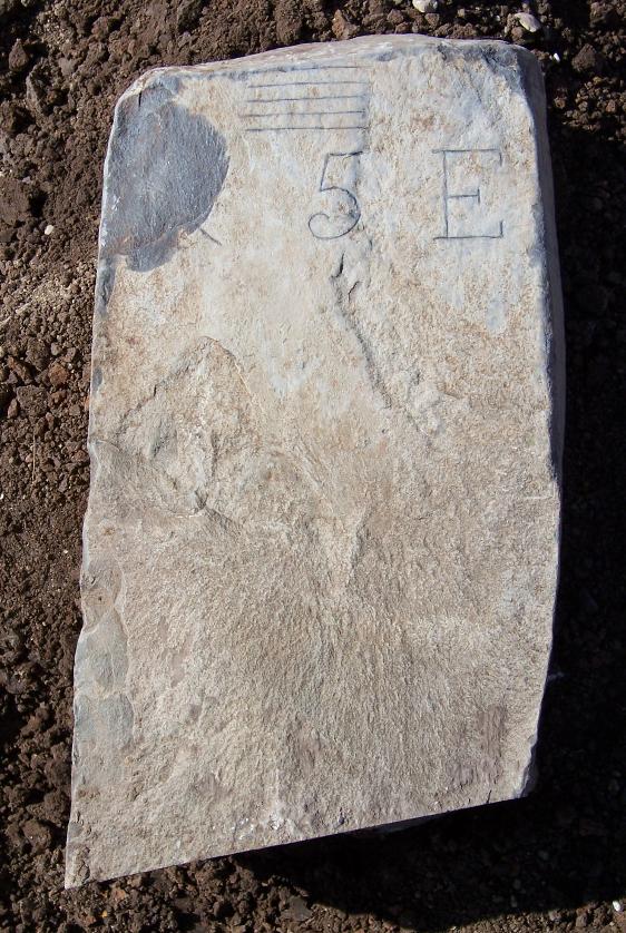 The 1857 township corner stone after being excavated and cleaned. On top of the stone is the red brick. View is looking north.