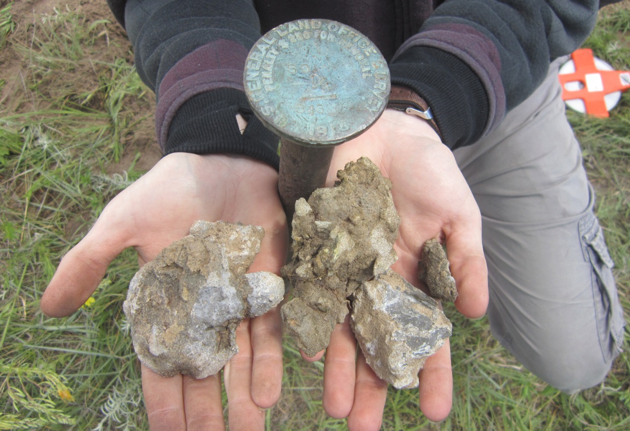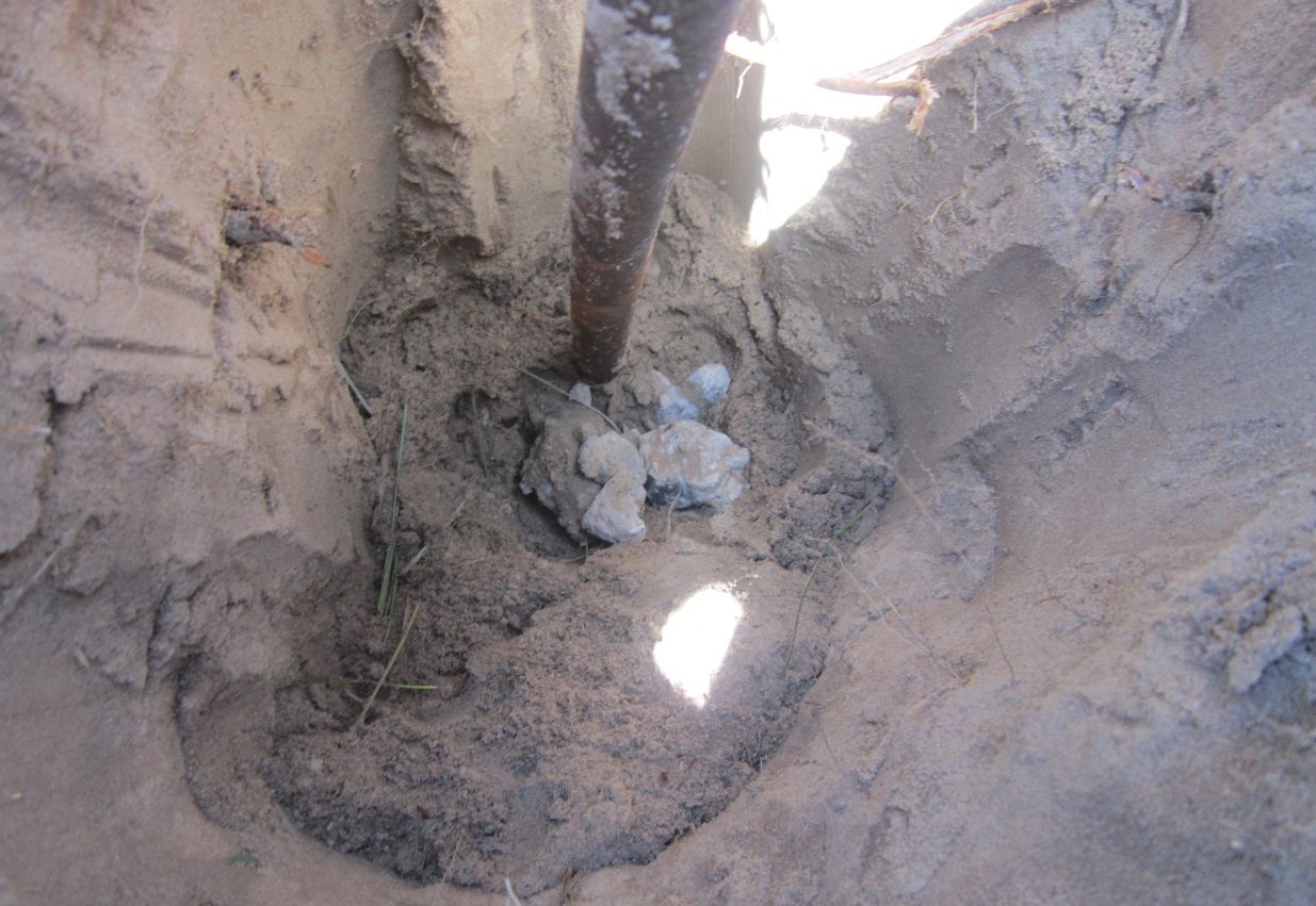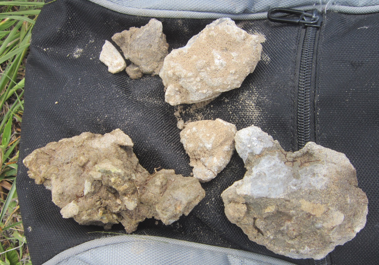 Another view of the concrete pieces with the iron pipe prior to replacement.