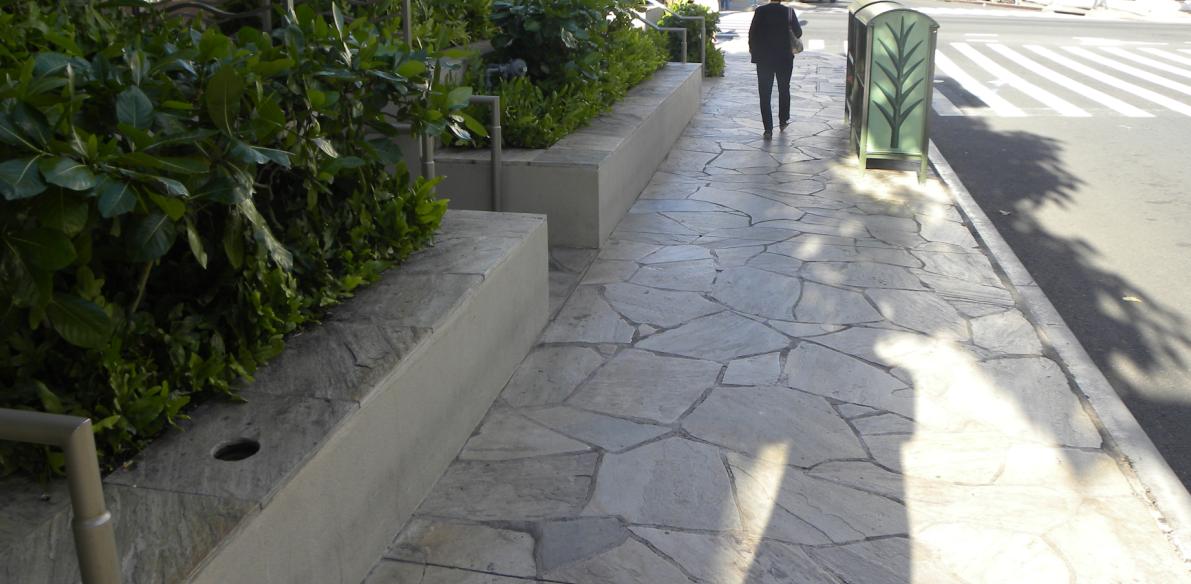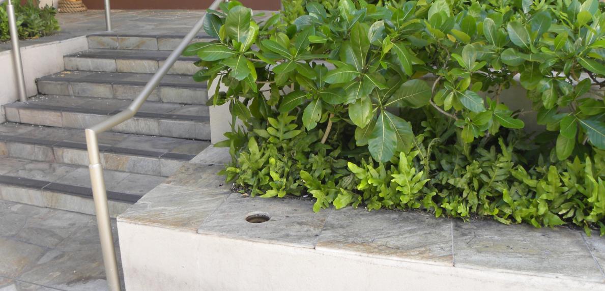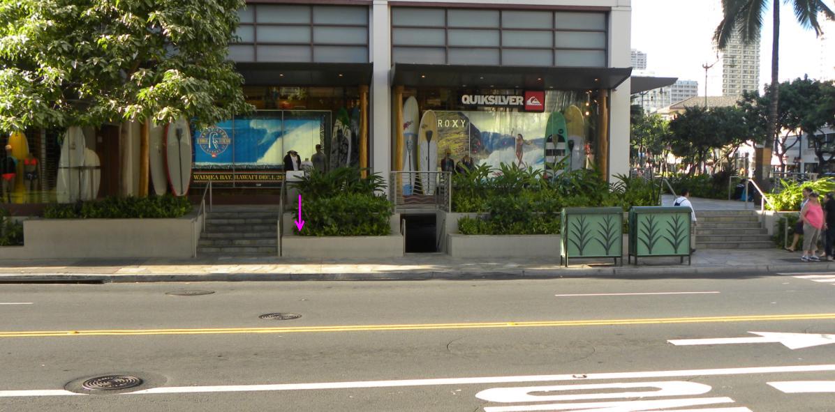 This is a standard USC&GS bench mark that was established in Honolulu approximately two blocks northeast of Waikiki Beach at the intersection of Kalakaua Avenue & Lewers Street. It was originally set on top of a concrete retaining wall. A decorative rock face was later added to the sides and top of the wall. Someone recognized the value of the marker and cored a nice hole to facilitate access to the bench mark.