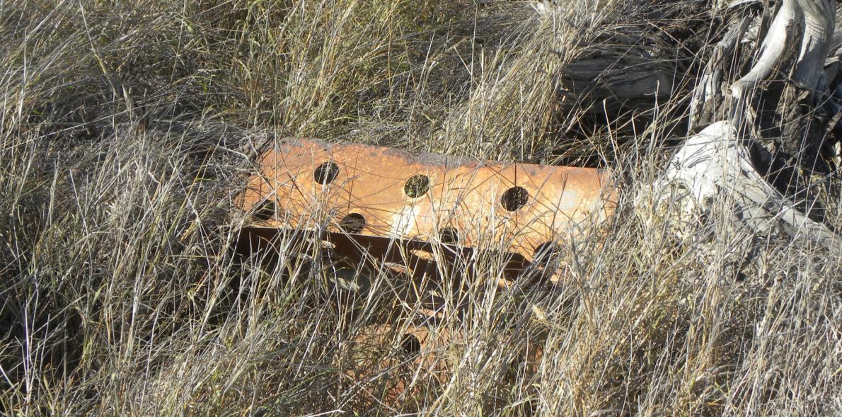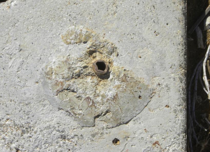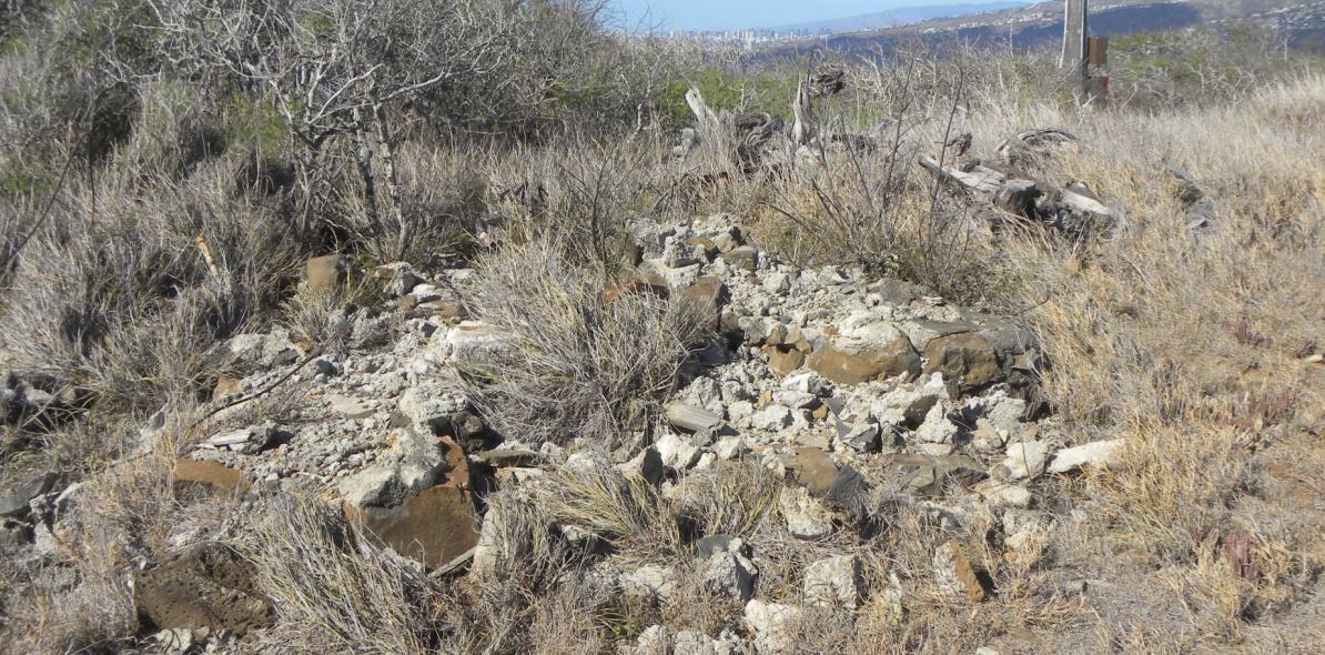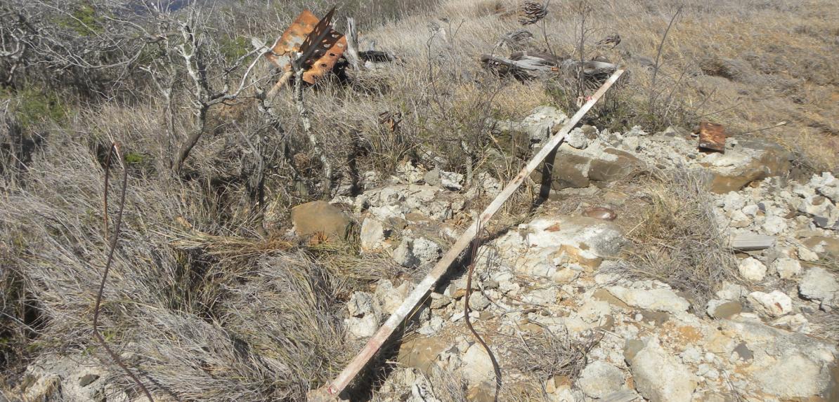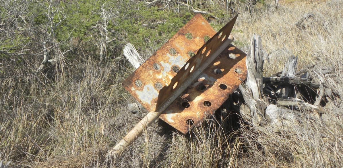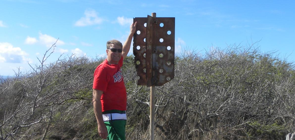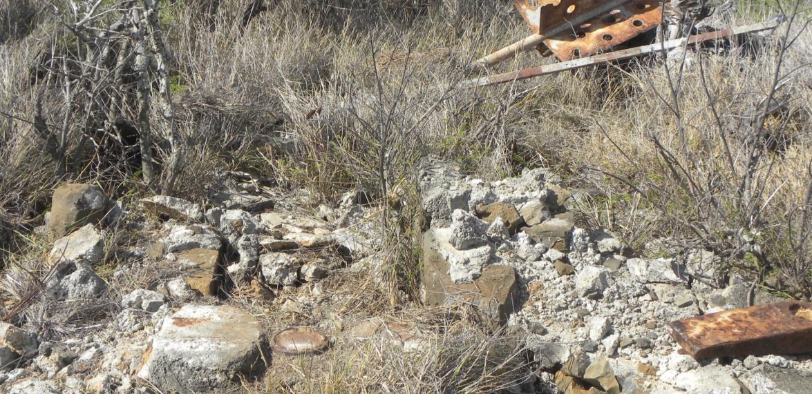 The top of the old Hawaii Territory Survey signal pole in the weeds.