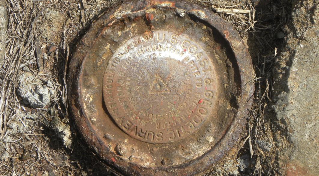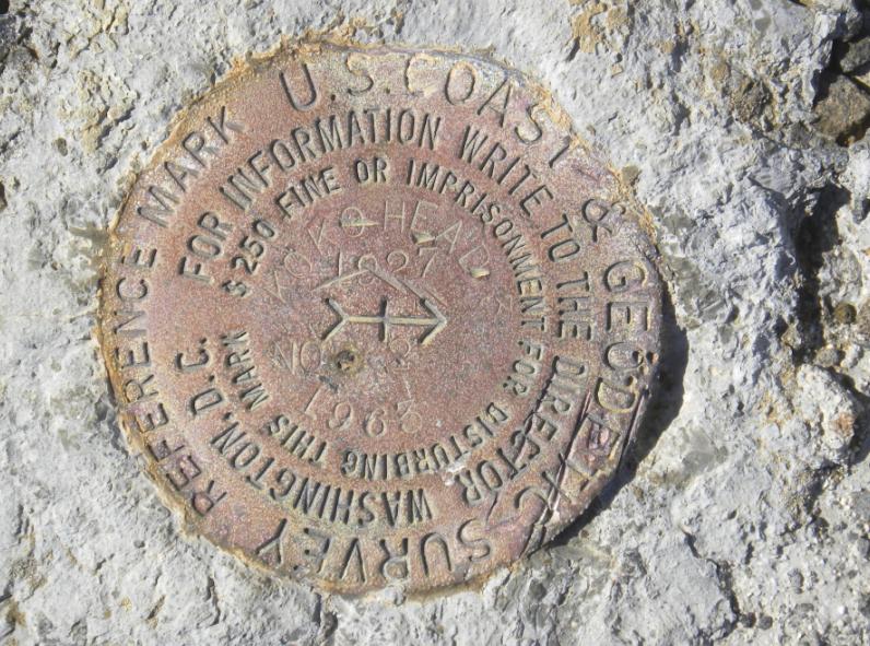 Reference Mark No. 2 on a corner of the old concrete WWII lookout bunker.