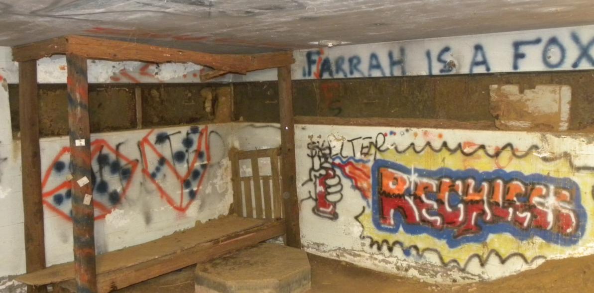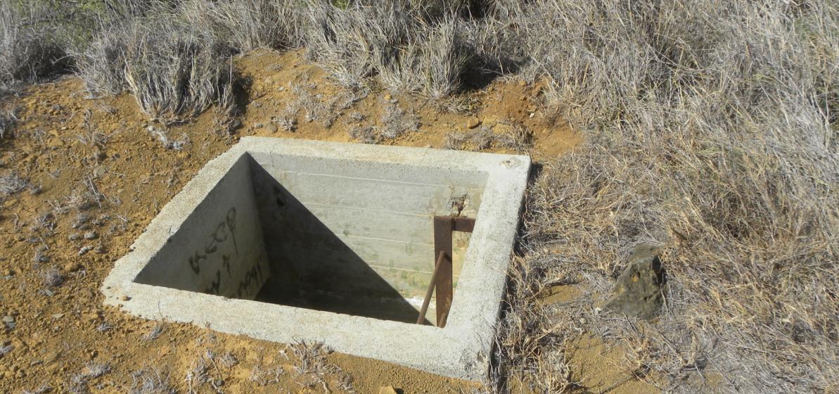 The entrance to the WWII bunker. The remains of Reference Mark No. 3 is at the top right of the opening.