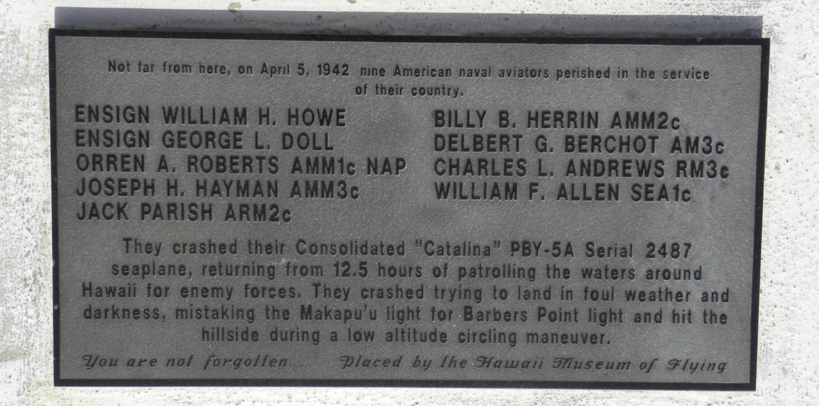 A nearby memorial for a WWII crew who crashed their PBY-5A "Catalina".