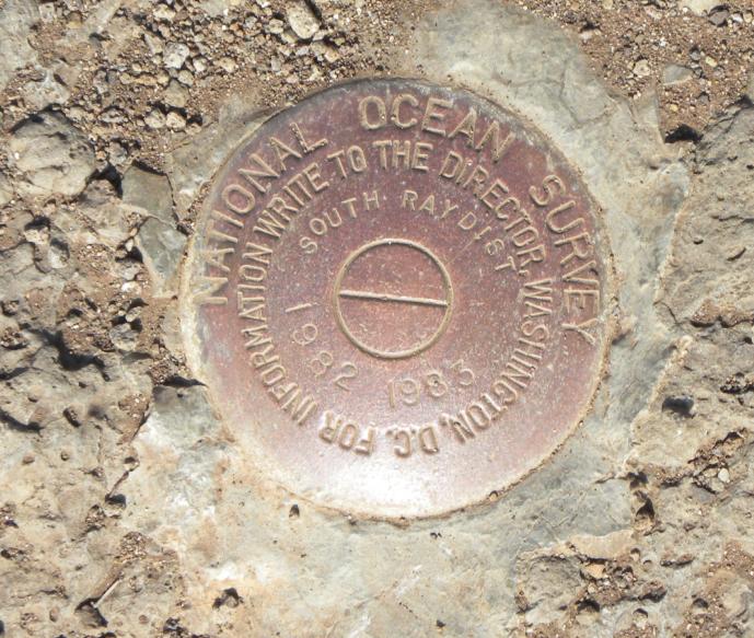 Another survey marker found near the oberservation lookout area on another hill. "South Ray Dist 1982 1983".
