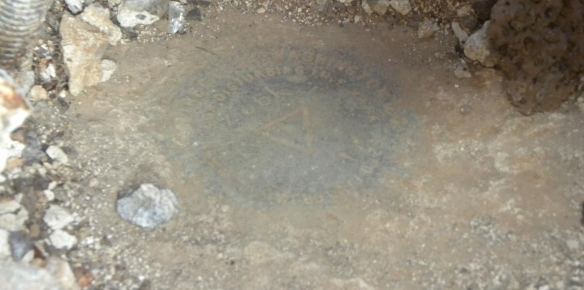 The arrow points to an opening where access can be made to the USC&GS bronze disk.