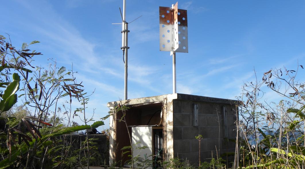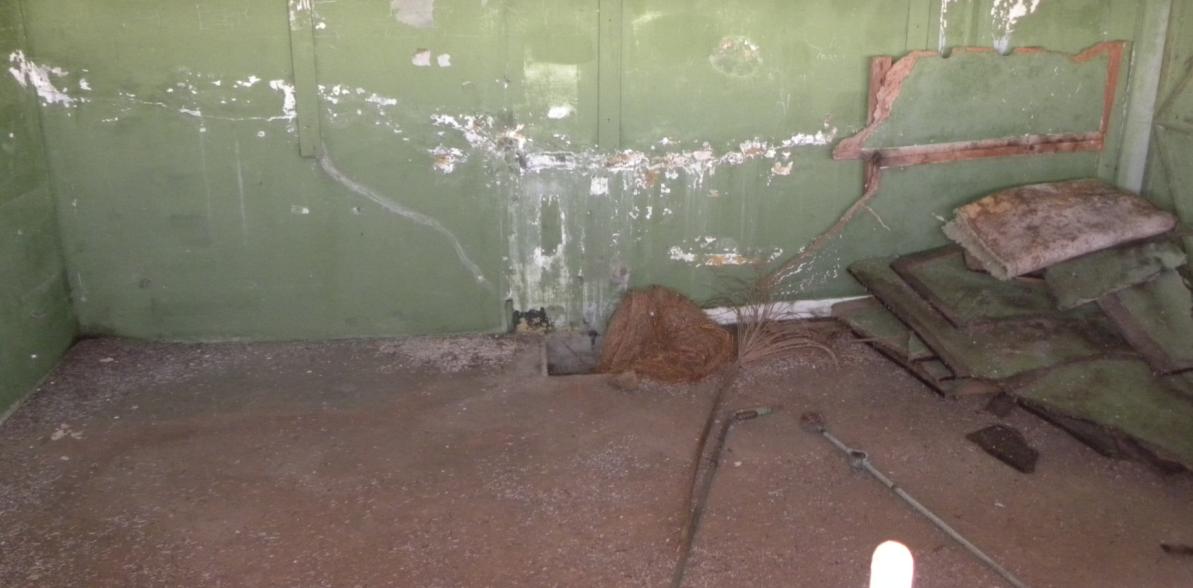 Backside of the structure that is used for communication equipment for the antenna. (Door is off).