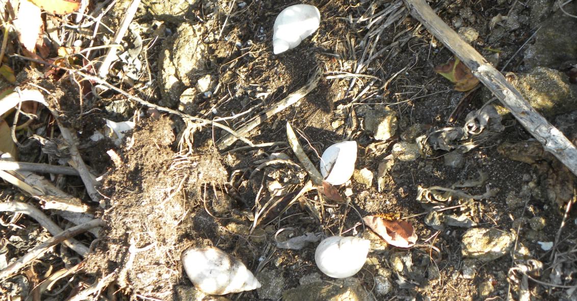 Rows of graves in the cemetery. Looking west toward the ridge where the survey marker is located.