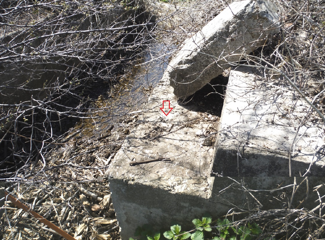 This bench mark rivet is located approximately 2.6 miles south of Ceresco, Nebraska, and about 300 feet west of the Highway 77 southbound lanes. It is on the northeast corner of a concrete structure that was once a bridge for the C&NW Railroad's Fremont-Lincoln branch line. All traces of the railroad in this area are now gone except for this structure. The bench mark is listed in the NGS datasheets as MK0923.