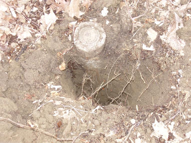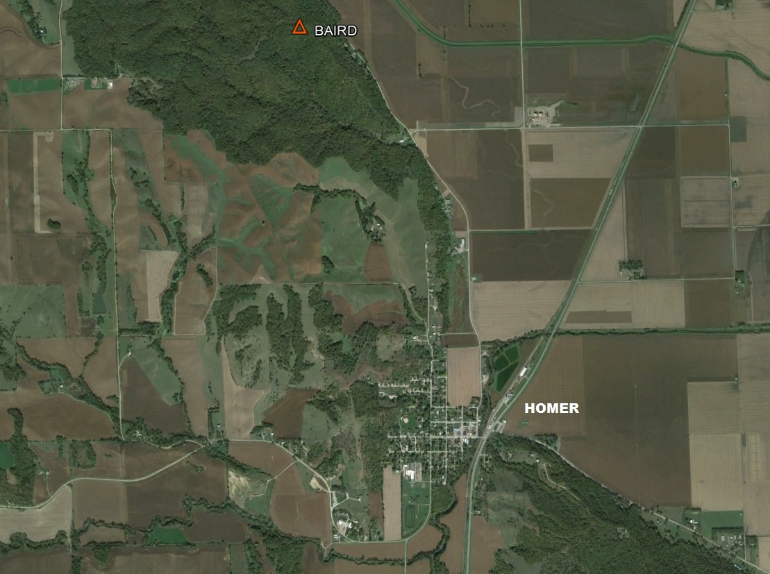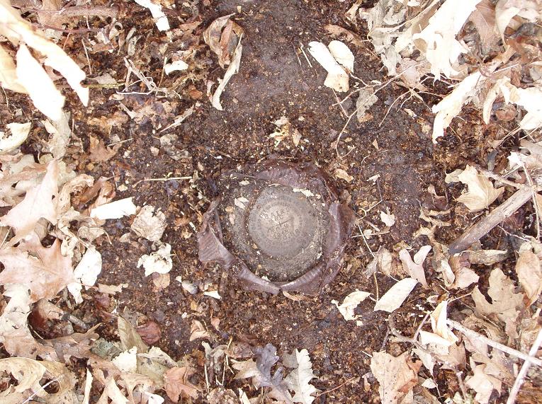 The monument marking the Missouri River Commission (MORC) triangulation station known as "Baird" is an example where the United States Coast & Geodetic Survey either found the original cast iron MORC cap missing on the pipe or they replaced it with their own brass disk by filling the pipe with concrete. The C&GS brass disk was set in 1948. What is not clear is whether C&GS first dug down to the stone to verify that the pipe was centered over the drill hole in the MORC stone.Triangulation station "Baird" is located on a high tree-covered bluff just northwest of the town of Homer, Nebraska. The original MORC description stated that the location was 1/2 mile southeast of Colonel Baird's house which is most likely how the station obtained its name. The house was probably next to a spring nearby known as Baird's Spring which is along the foot of the bluffs. Today the station is poor for GPS use due to the many trees that surround the area, but one can imagine the spectacular view that this location once offered. There is evidence of use of this marker by the U. S. Army Corps of Engineers by finding three COE reference disks in concrete in addition to the two reference marks placed by USC&GS in 1948.