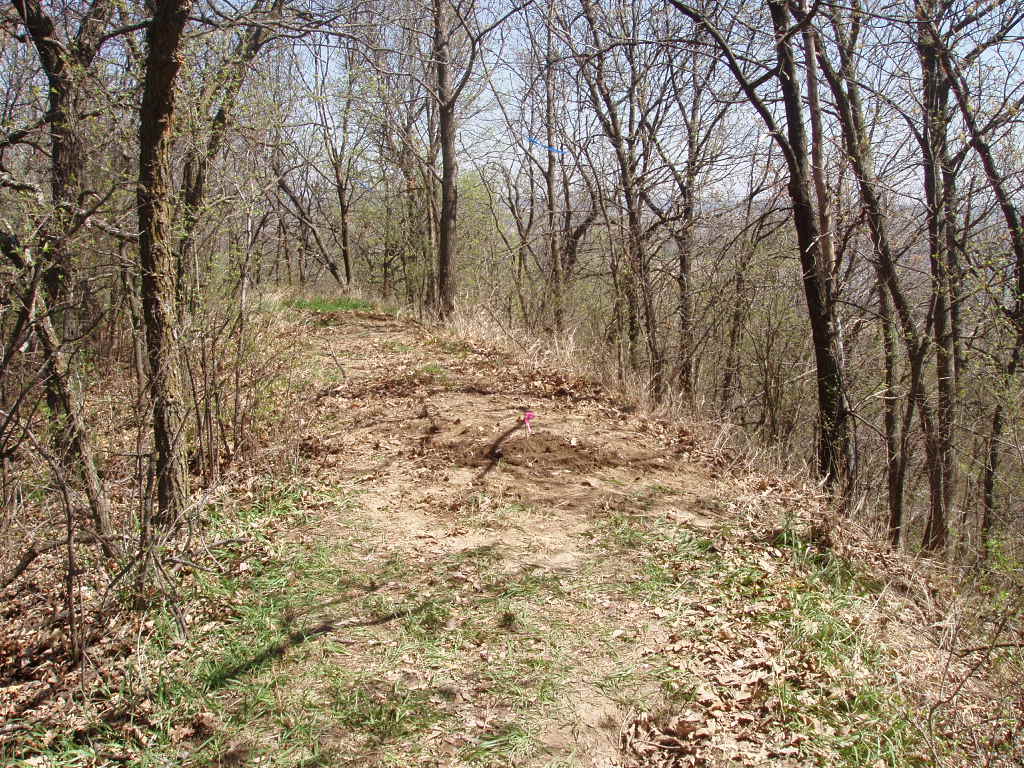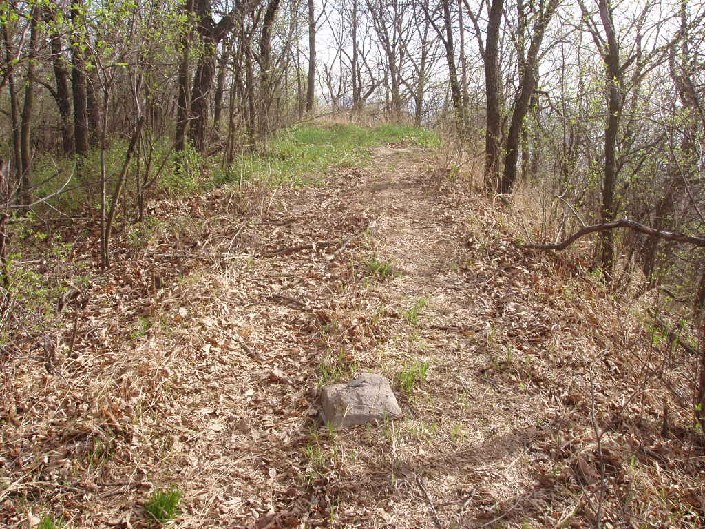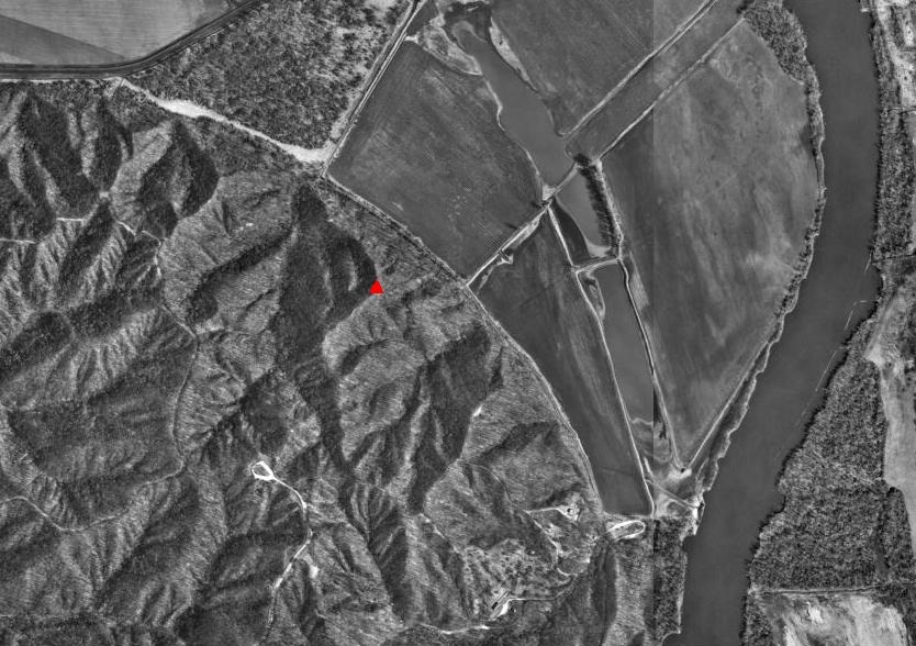 The red triangle shows the location of the "St. Deroin" triangulation station in Indian Cave State Park which is only accessible by hiking trail. The high narrow ridges are about 75' above the floor of the ravines.