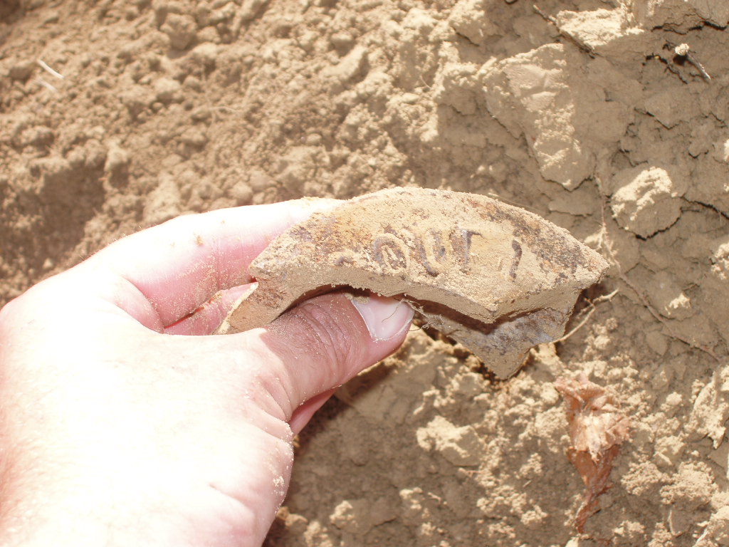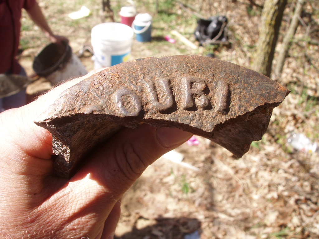 The cleaned piece of cast iron reveals part of the word "Missouri". No other pieces were found.