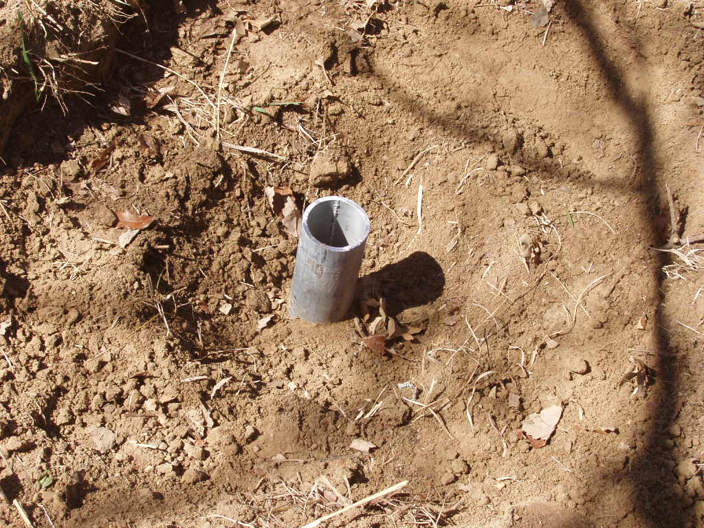 The 28" long pipe is in place. We made it short enough so it would not be sticking above the ground.