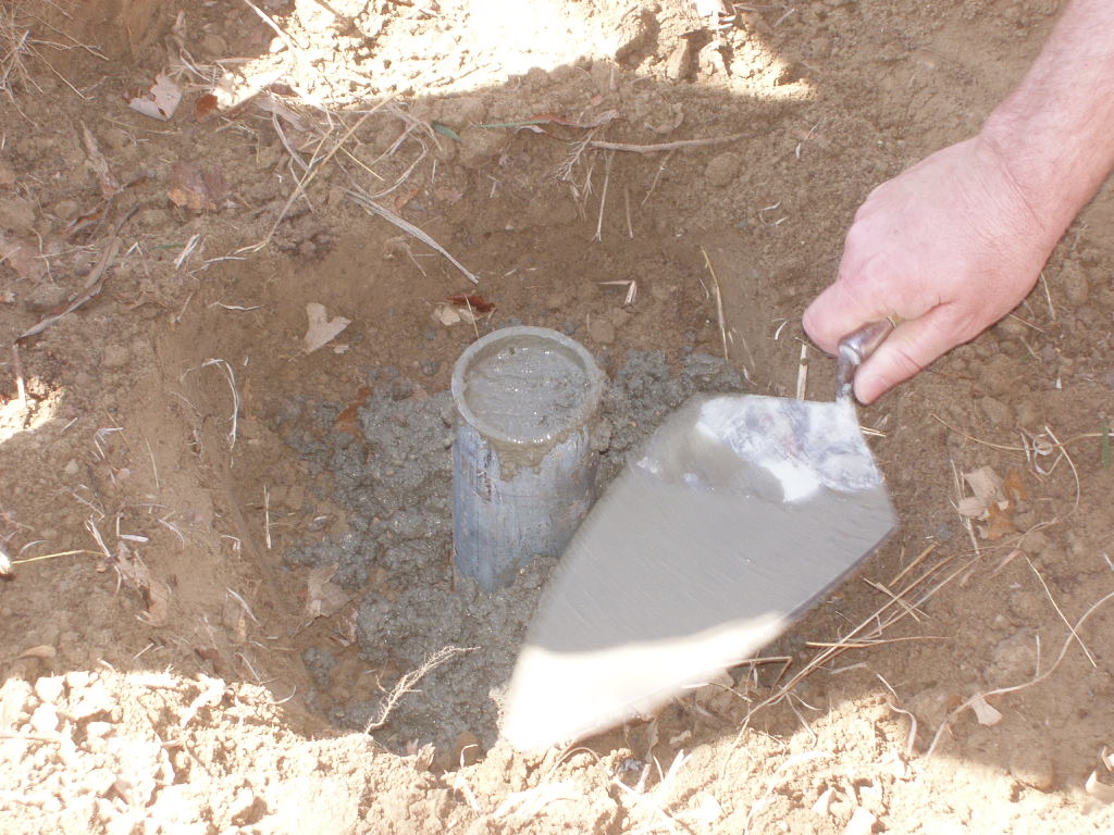 We first partially filled the pipe with soil, then the rest with concrete to the top.