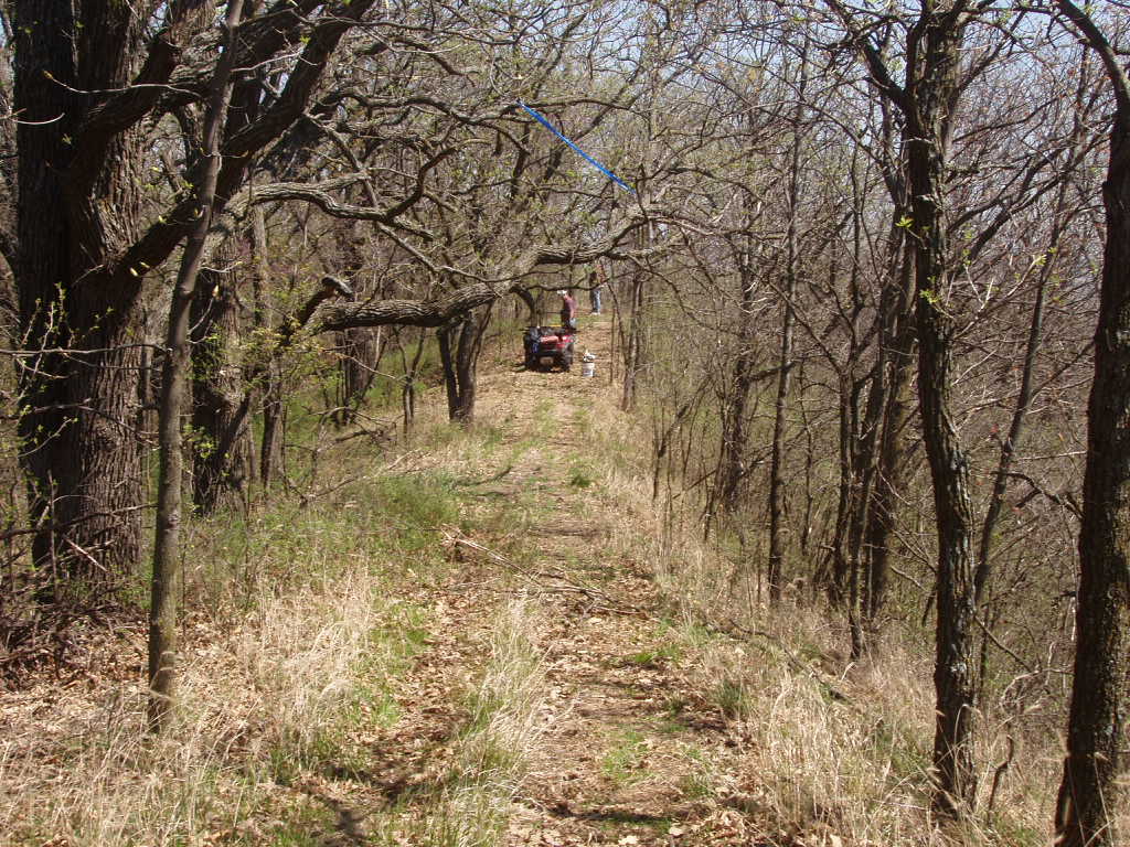 Our ReturnOur return trip to the "St. Deroin" marker occurred on April 14, 2006. Nebraska Game & Parks surveyor Rex Heiden joined Gene Thomsen and Jerry Penry during this second visit. The use of a Game & Parks 4-wheeler was a life saver in transporting the needed supplies to the marker's location for the remonumentation.
