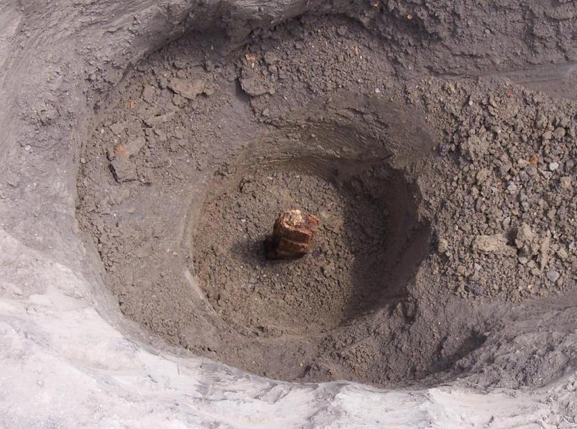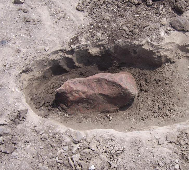 This excavated stone was placed by Lancaster County Surveyor Winfield S. Scott after he failed to find the original GLO stone set in 1857 by Jonathan P. Jones. The stone placed by Scott is a Red Sandstone measuring 15"x15"x4". Beneath the stone was found a wooden stake measuring 1"x2"x12" with the lower tip being charred.