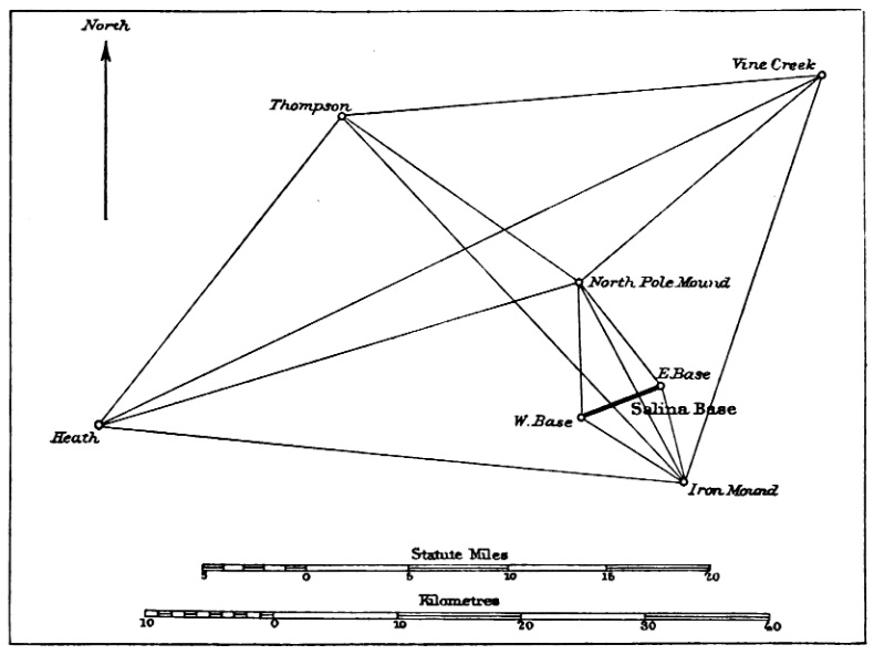 The triangulation stations that connected to the Salina Base Line.