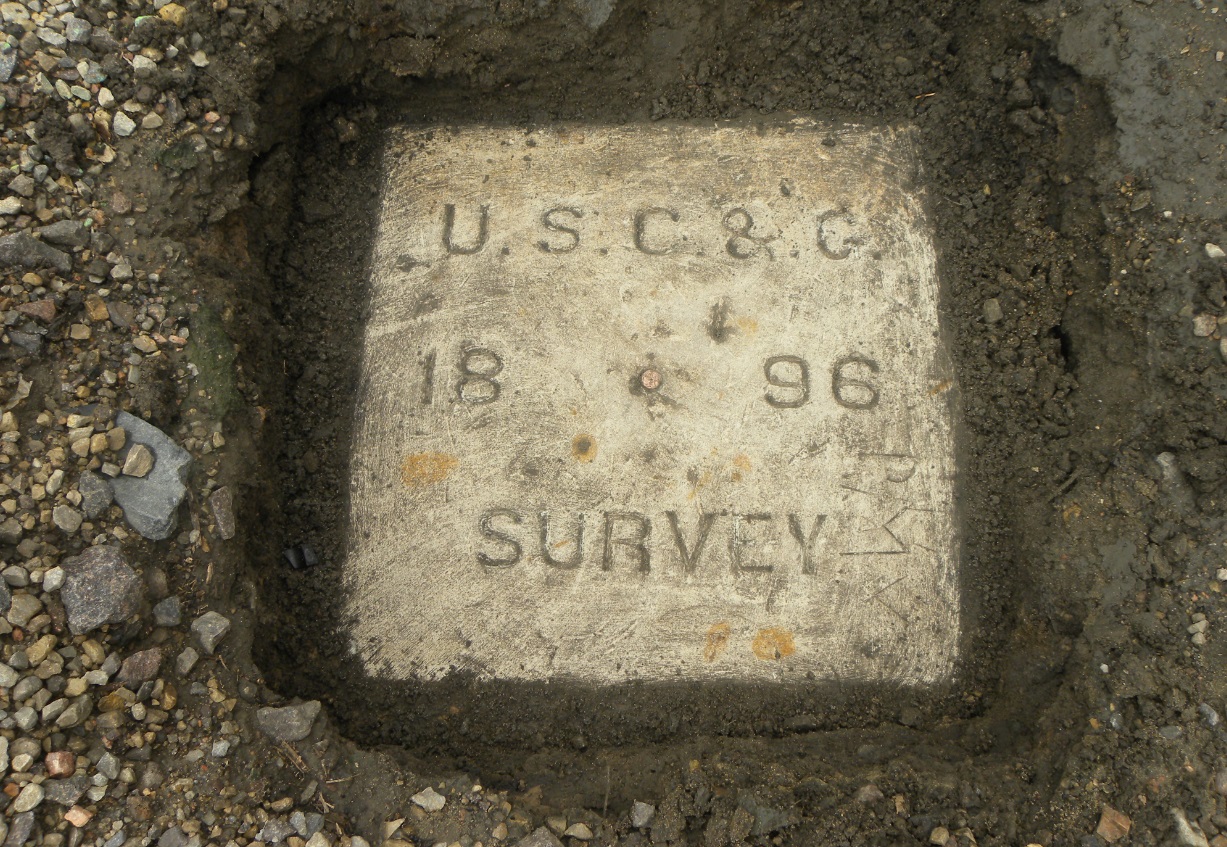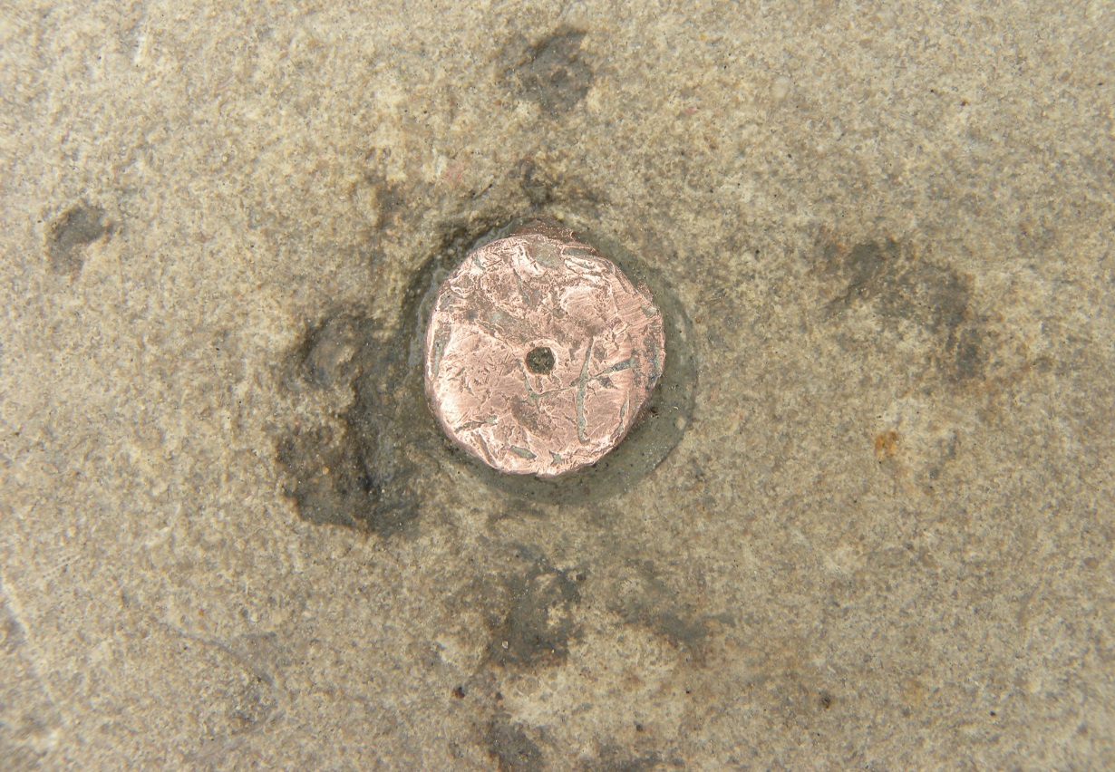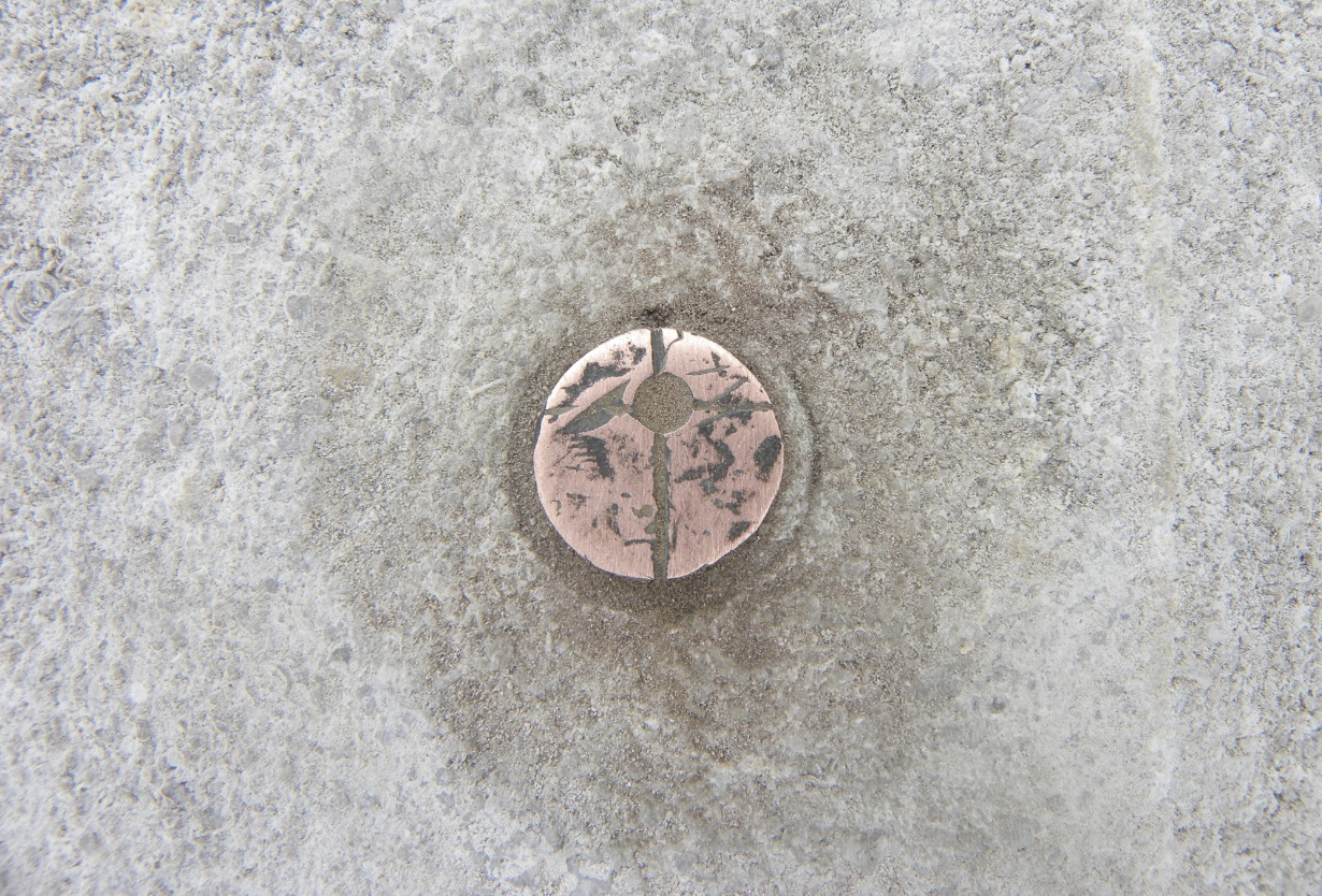 The copper pin marking the point in the center of West Base.
