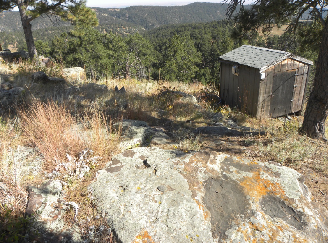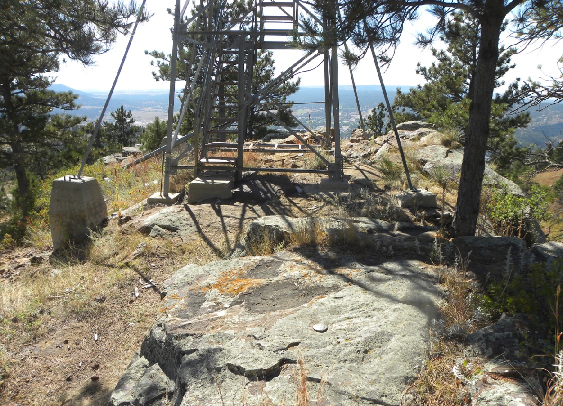 A rare triangulation station monument in the Black Hills most likely placed during the Great Depression years of the 1930's. This type of marker was placed by what was known as the State Survey of South Dakota which was loosely monitored by USC&GS. Battle Mountain is northeast of Hot Springs and is accessible by vehicle. The true name for this mark is not known, but I have designated it "Battle Mountain". NGS does not maintain a datasheet on this mark, so its position is unknown unless the State Survey data can be found. Recovered by Kurt Luebke, Dave Ingram, and Jerry Penry.