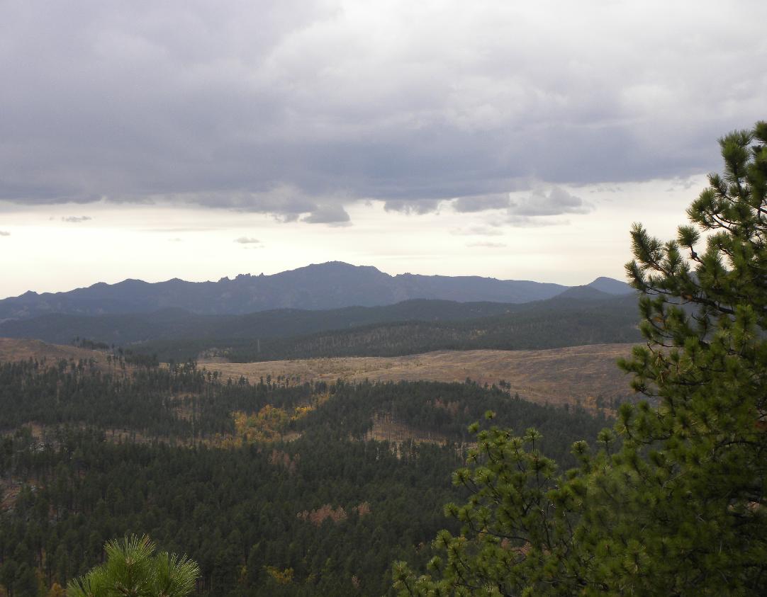 Harney Peak as viewed from Boulder Hill. It is located approximately 9 miles to the southwest.