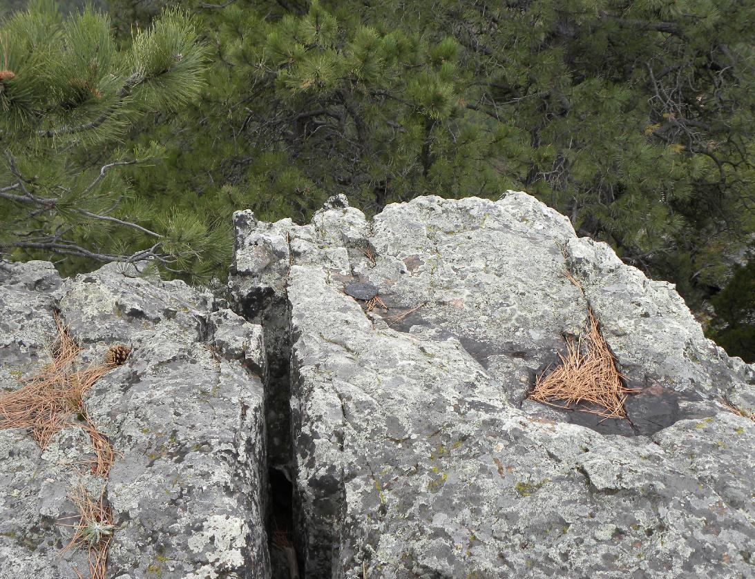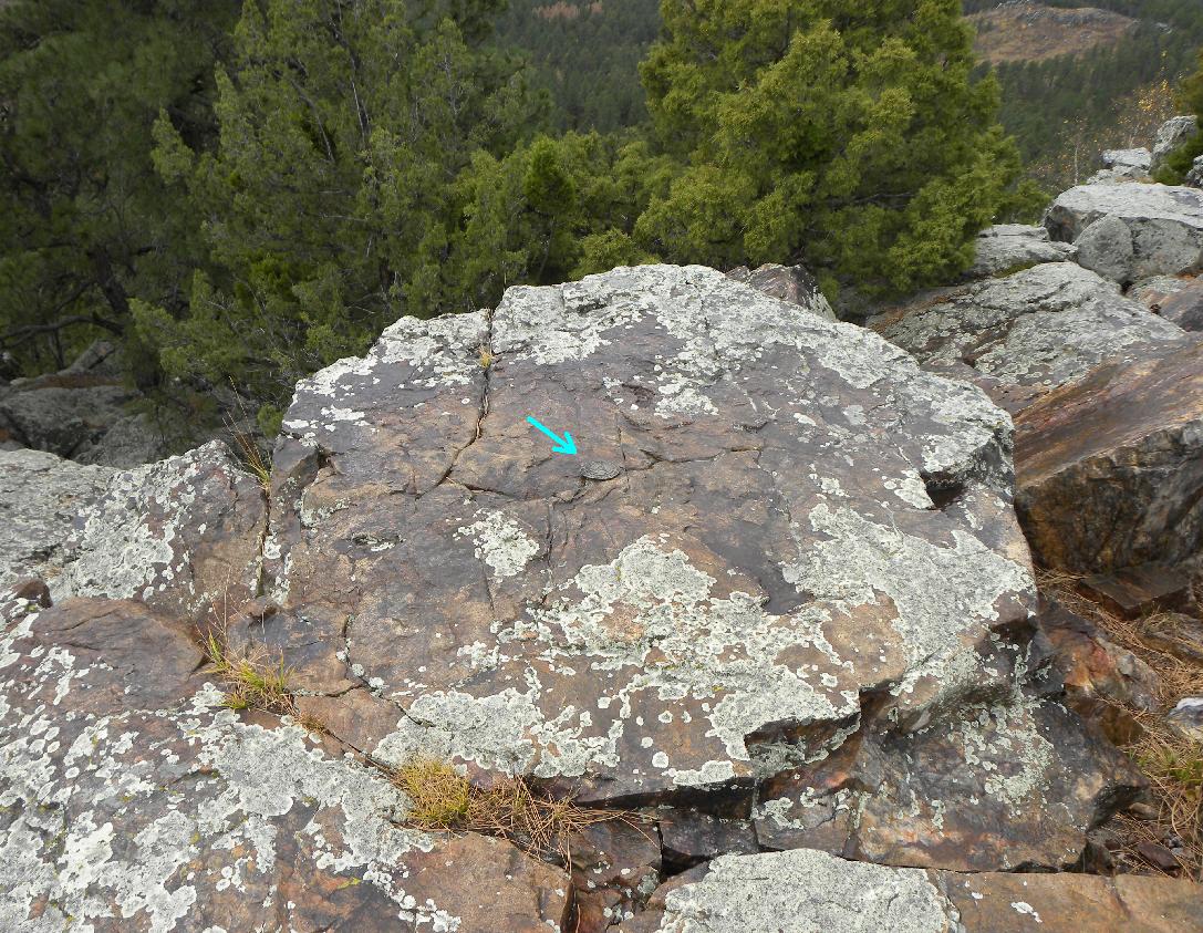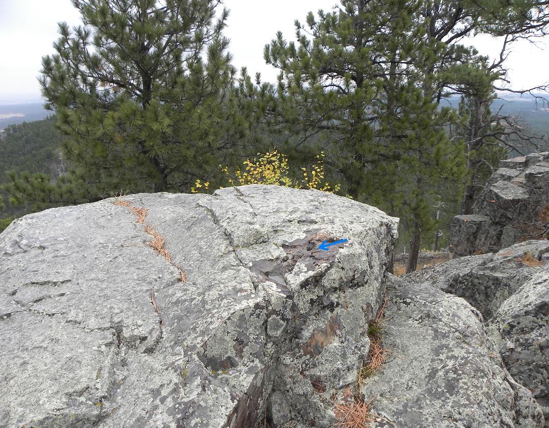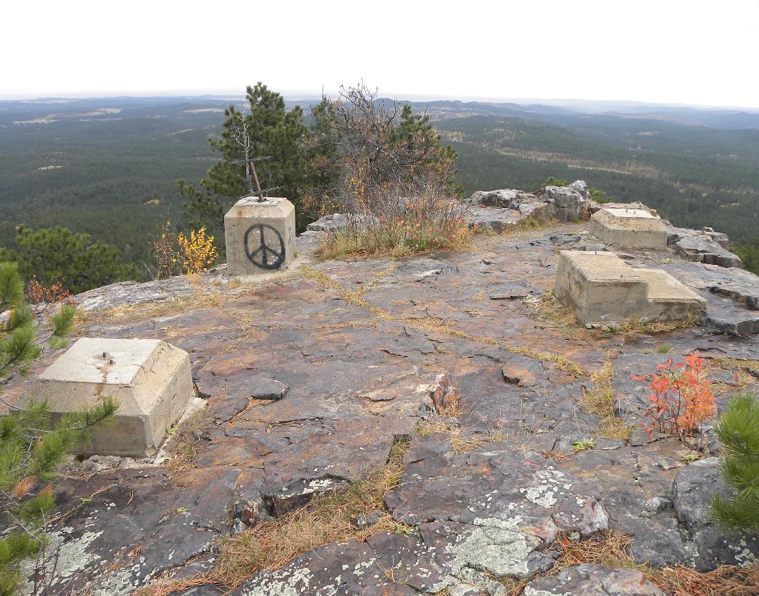 Triangulation station "Boulder" is located on the northern portion of the top of Boulder Hill in the Black Hills of South Dakota approximately 12 miles southwest of Rapid City. In 1964, when the station was last reported, there was mention of a windcharger 12' north of the marker. Today nothing remains of this structure. On the southern portion of the hill, there are large concrete footings that most likely supported a fire lookout tower. The description in 1950 stated that a 4-legged wooden tower with a glass enclosed cabin rose 50' above the hill.