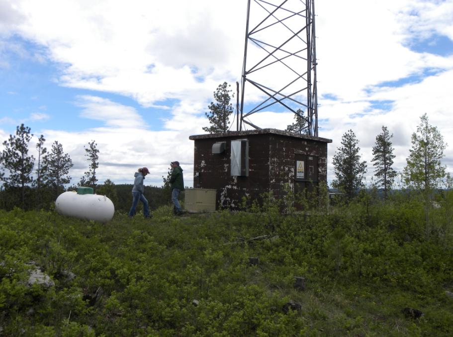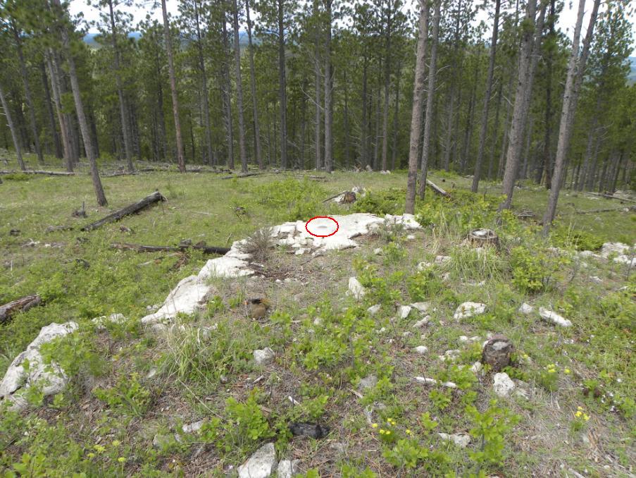 This triangulation station is located on Veteran Peak approximately 5 miles south-southwest of Sturgis, South Dakota. On the top of the peak are communication facilities with one building next to the triangulation station. An access road leads to the site. Recovered by Kurt Luebke, Jenny Stukel Penry and Jerry Penry.