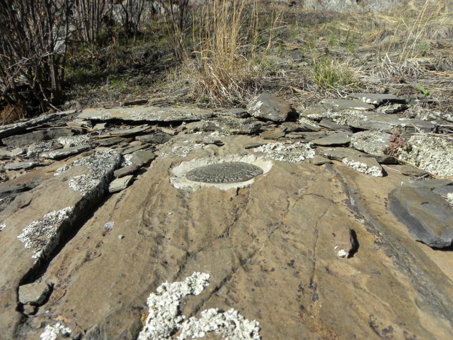 This bench mark disk is located along the Mickelson Trail approximately 6 miles northwest of Hill City, South Dakota. The trail was formerly the CB&Q Railroad through the central portion of the Black Hills. Recovered by Kurt Luebke, Jenny Stukel, and Jerry Penry.