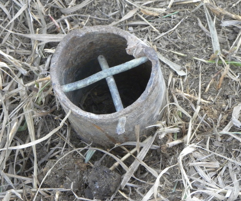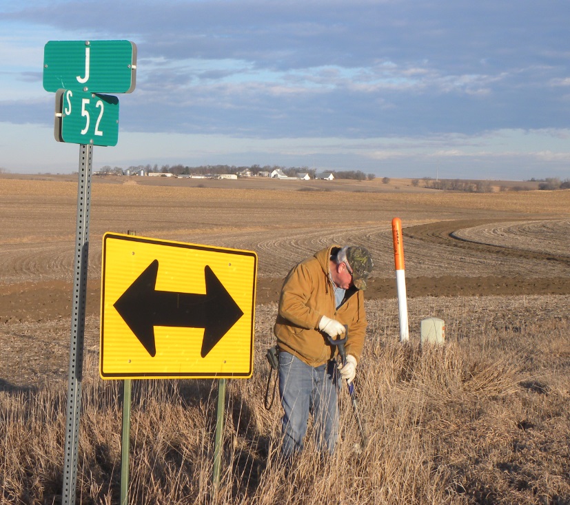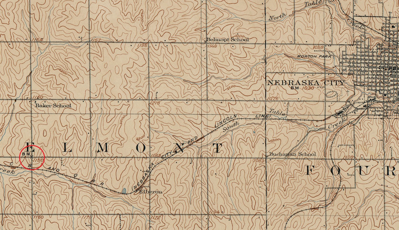 Located approximately 5 miles west and 2 miles south of Nebraska City. This bench mark is in a grass road ditch and has evidently been struck by a piece of machinery. A search was made for the bronze cap, but it was not found. Recovered by Gene Thomsen and Jerry Penry.
