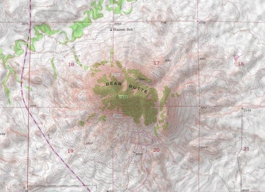Bear Butte as shown on the 7.5-minute U.S. Geological Survey quadrangle sheet. The triangle designates the location of the 1925 USC&GS triangulation station.