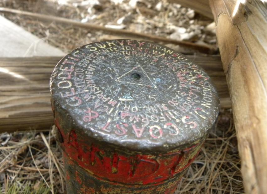 The location of the original USGS 1893 triangulation station. (Looking west toward the observation platform over the USC&GS 1925 bronze cap on iron pipe in the background).