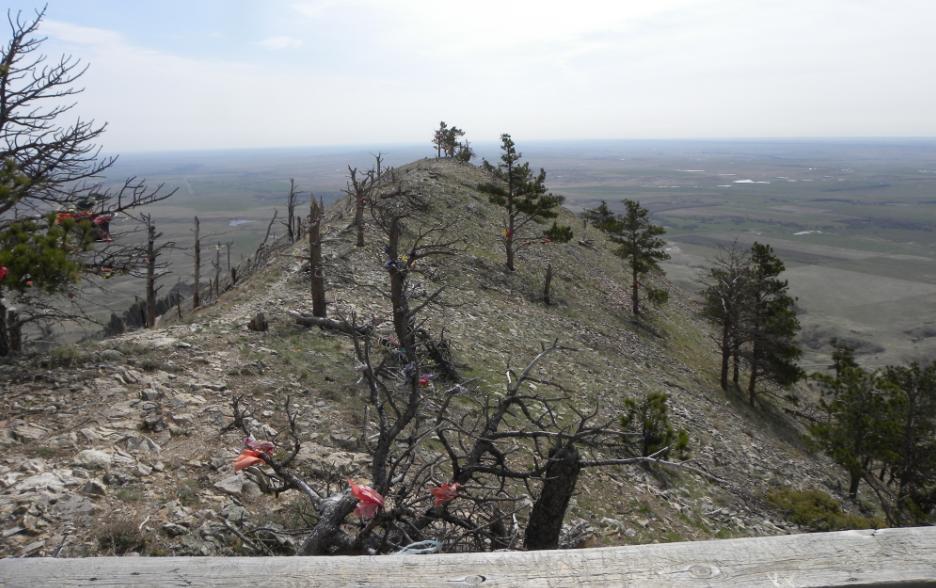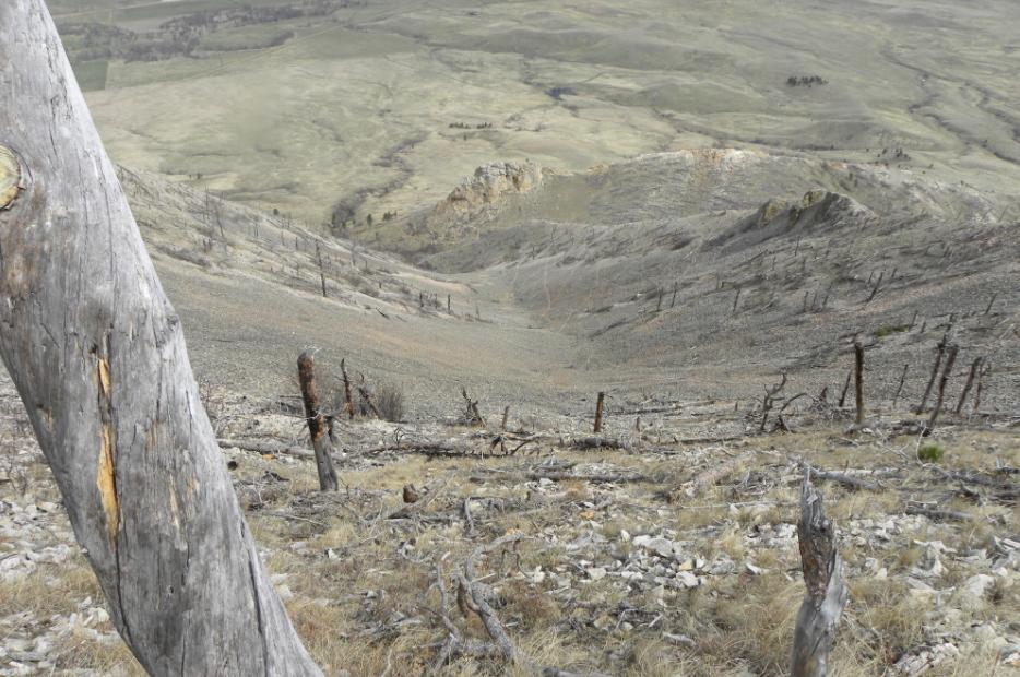 A view down the north slope of Bear Butte. The dead trees are a result of the devastating fire of 1996. The trees have never recovered on the mountain.