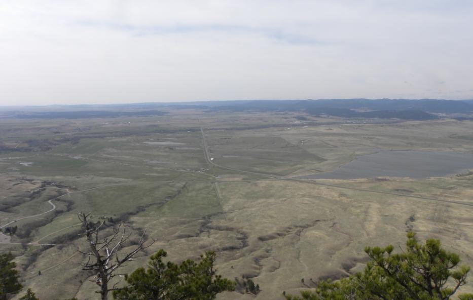 Looking south from atop Bear Butte toward the Black Hills. Bear Butte Lake is to the right.