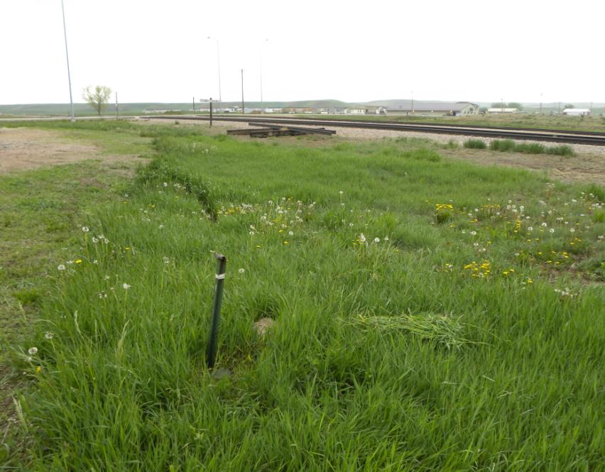 This bench mark is located at Hermosa, South Dakota along the west side of the raiklroad and south of Highway 40. It is a bronze cap on an iron pipe. The cap is now above even with the surface of the ground. Recovered by Kurt Luebke, Jenny Stukel Penry, and Jerry Penry.