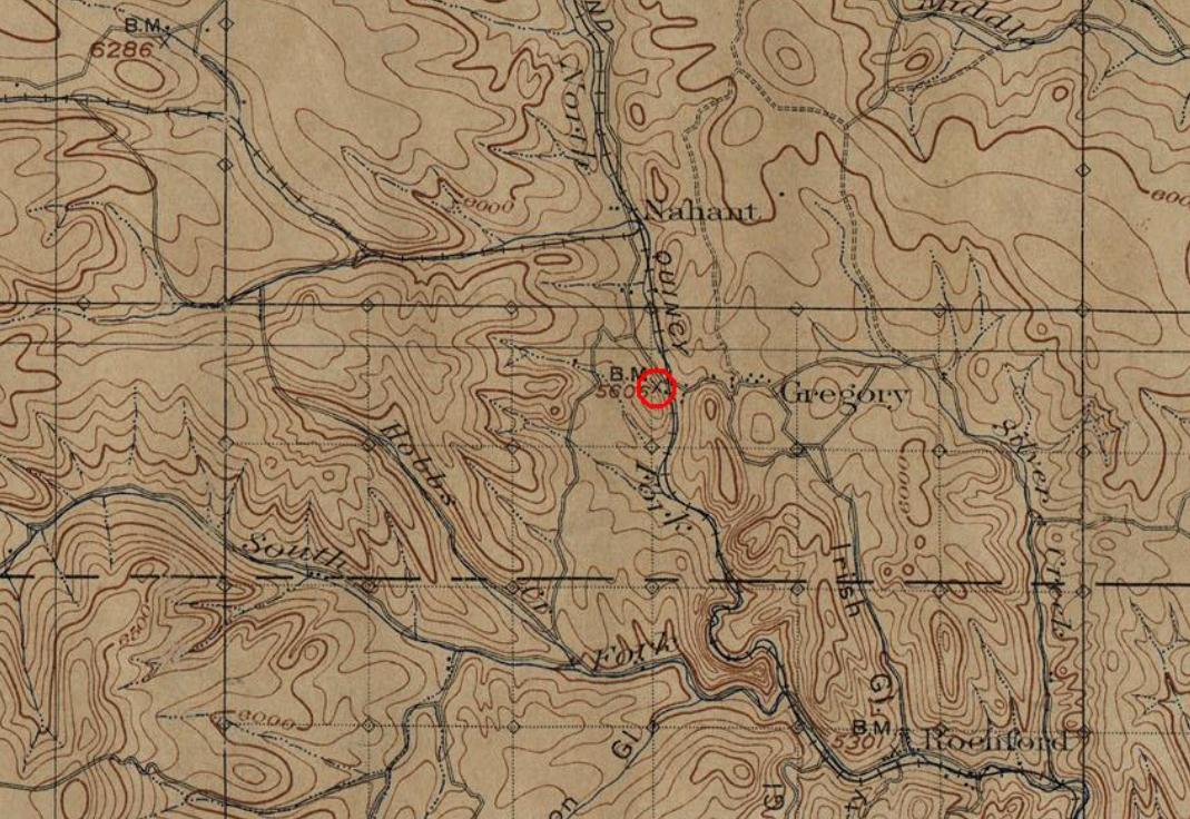 This is a bench mark that has eluded discovery. The original description by USGS stated that it was a copper bolt in the northwest side of a rock quarry 1/2 mile south of the former railroad station at Nahant, South Dakota. Further information stated it was 200 feet west of the railroad tracks and 30 feet southwest and 14 feet above the wagon road. Despite a search with the metal detector, the monument was not found. The quarry may have had further use and the copper bolt removed.
