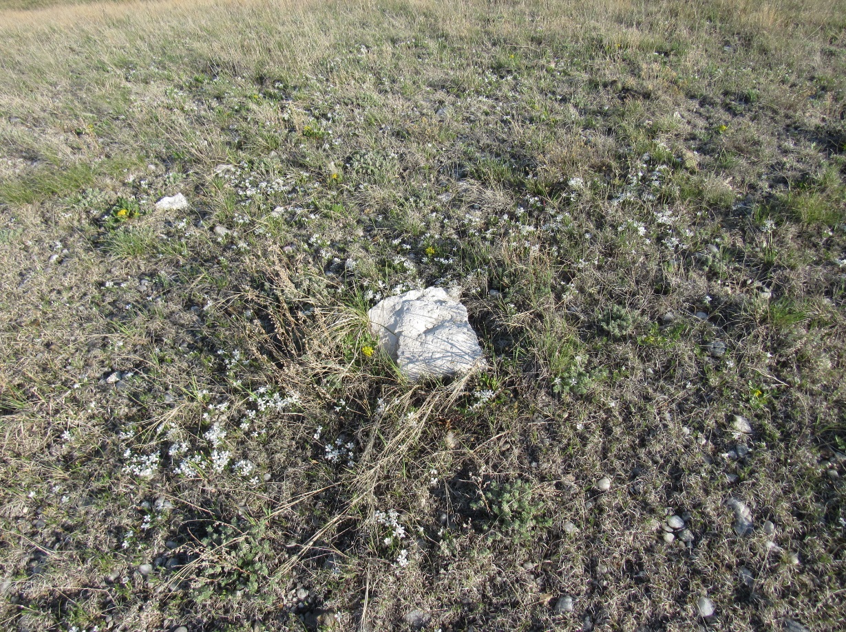 Looking south from the monument over the grass covered hills. A formation on the horizon known as Limestone Butte is 5 miles distant to the left of center.